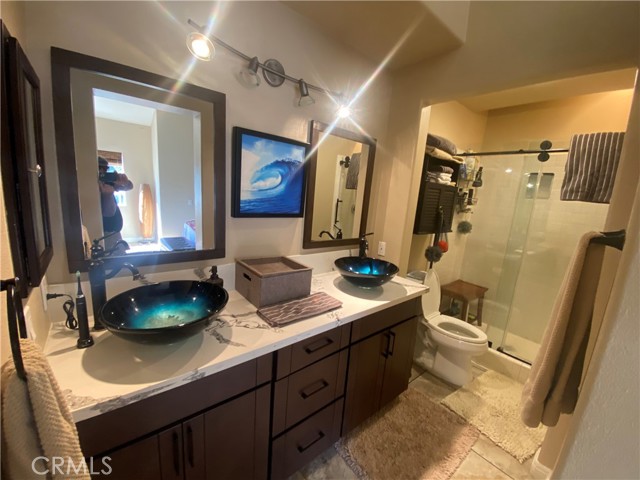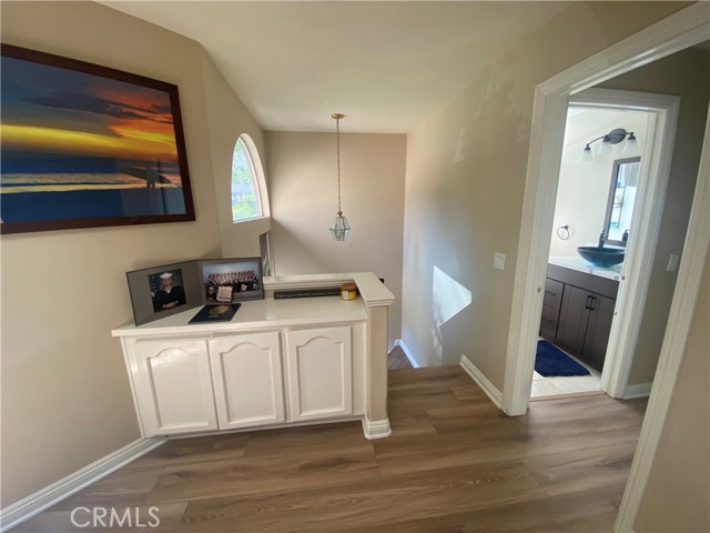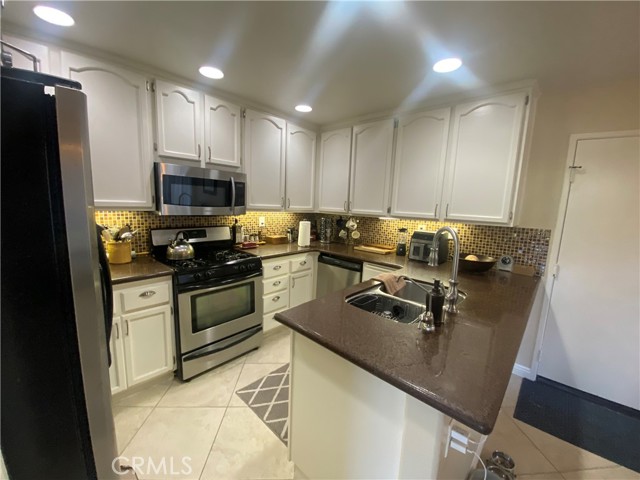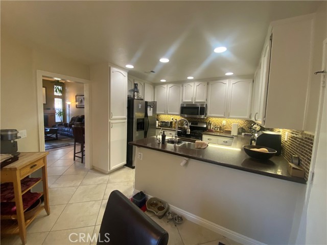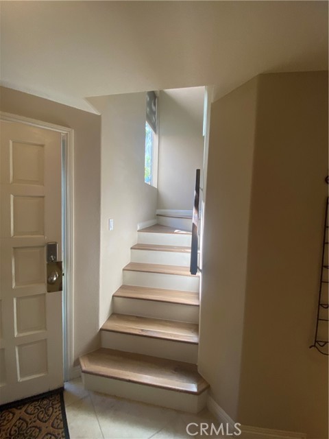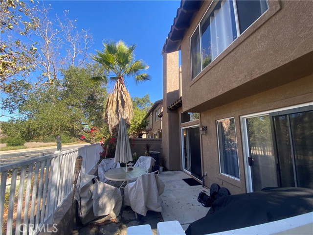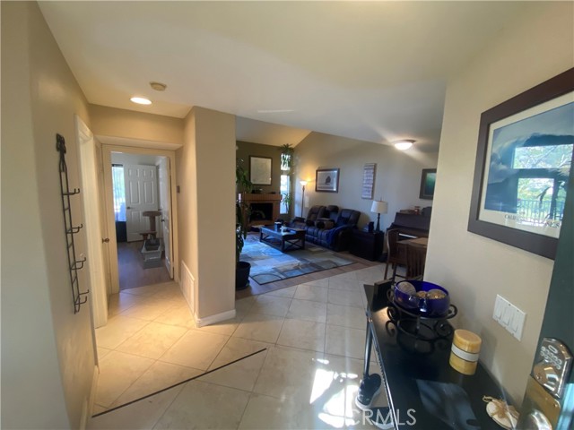 Welcome to your dream home in the coveted Tierra Linda Community! This exquisite end unit with driveway is located on a single loaded street for ample parking. Step inside and be captivated by the light tile flooring that transitions to light laminate flooring, creating an open, airy atmosphere. vaulted ceilings enhance the spacious living and dining room, while custom paint adds a touch of elegance. The kitchen, a chef's delight, featuring white cabinets, and stunning dark granite countertops and beautiful backsplash. The Living room is a cozy haven, with gas fireplace to keep you warm on cold days. The backyard has Canyon and tree views, with easy to care for patio. The downstairs half bath has New cabinets, and white/ grey quartz counters, raised glass sink. and a shower behind the door, and access to a great storage area. Upstairs, light laminate flooring continues in an enormous loft that looks over the downstairs, can be an office, or playroom, The primary suite, is a tranquil retreat. and a spacious walk-in closet. The primary bath is a luxurious haven, featuring a walk-in shower with travertine tile espresso cabinets and raised glass bowl sink and New glass shower doors with black fixtures, whitewash cabinets, white counters. Laundry including washer and dryer in the garage. All homes in community fully re-piped in 2018, and new roofs and paint are coming 2026. Nestled within vibrant Rancho Santa Margarita, voted the safest city in California in 2024, residents enjoy a community pool, nearby hiking and biking trails, and views of Tijeras Creek golf course. City amenities include beautiful parks, swimming pools, a beach club with a lagoon, BBQ and picnic areas, a lake walk, playgrounds, sports fields, tennis, pickleball, basketball, and volleyball courts. Additional features include a dog park, skate park, and hiking and biking trails just steps away. Distinguished schools.