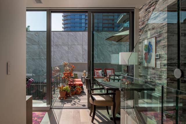 Luxury defined! Newly updated and professionally designed interior accentuates the modern architecture in this stunning townhouse that lives like a single-family home. Plus, the added value of a 'lock-and-go' lifestyle, 24/7 front desk staff and access to luxury high-rise amenities. Experience sophistication & comfort in this rare offering - the largest townhouse at The Park Bankers Hill, one of San Diego’s most prestigious addresses. This contemporary townhouse features three levels serviced by a private elevator. The interior is a triumph, highlighted by floor-to-ceiling glass windows and floating staircases. The floor plan includes two bedrooms, plus a den/office, two and a half baths, a family room, a large dining room, an open kitchen, and a relaxed, cozy living room. Designed to 'blur the sense of indoor/outdoor living', there are five outdoor terraces/patios that infuse San Diego's equable natural sunlight & provide spaces for dining, entertaining, and a curated garden. Creston & Amazon Alexa fully automated Smart Home system conveniently operates lighting, Sonos audio, and solar window shades. The exterior is clad in glass, Volakas marble, and stamped concrete formwork to announce a sophisticated arrival. Sited across the street from Balboa Park's 1,200 acres in the vibrant Bankers Hill neighborhood, this exceptional residence offers a unique opportunity to enjoy upscale urban living just steps away from renowned dining and the city’s cultural landmarks. The Park was completed in 2018 by DIALOG (architects), developer Zephyr, and contractor Balfour Beatty. Lavish amenities include 24/7 front desk staff, private lounge, conference/dining room, full event kitchen, wine room, gym with yoga room, pool, BBQ, two guest suites, and a dog wash. The six townhomes at The Park complement the 14-story luxury tower comprised of 60 modern homes and 2 ground-level retail spaces.