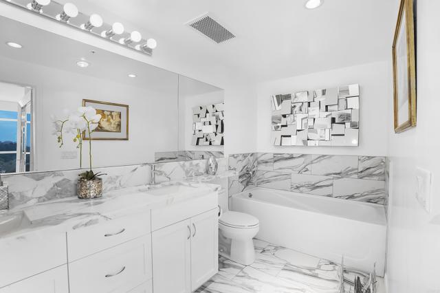 Experience the height of modern elegance in this impeccably designed 2Br 2Ba residence with den, offering the perfect blend of style and urban sophistication. Discovery at Cortez Hill is a contemporary full service luxury building offering residents comfort, convenience, and security. Expansive open-plan living areas flow seamlessly across honed travertine floors, illumilnated by statement lighting and spectacular views framed by floor to ceiling windows with automated roll-down shades and a beautiful gas fireplace. Entertain guests at the elegant bar or move to the private balcony with views of Balboa Park and the beautiful mountains to the east. Peek bay views to the west and south add to the ambiance. The chef’s kitchen is both beautiful and functional, featuring sleek Italian porcelain countertops, custom cabinetry, and top-tier stainless steel appliances; an entertainer’s dream that anchors the home’s refined aesthetic. The serene primary suite invites relaxation with blackout shades and drapes, for a restful night's sleep and a spa-inspired bath with dual marble vanity, soaking tub, walk-in shower and generous storage. The 2nd bedroom and bath provides comfort for family or guests while the versatile den provides the ideal setting for a home office, media lounge, or creative space. An in-unit laundry and walk-in pantry provide storage and convenience. The building features 24-hour concierge, a state of the art fitness center with separate weight room and cardio equipment, steam room, and sauna. The rooftop lap pool, spa, barbecues, fire-pit, and outdoor dining area are like living at a private resort. A bicycle room, business center, conference room, deeded storage and 2 secure side by side underground parking spaces round out the building amenities. This residence delivers an effortless lifestyle in one of the quietest downtown neighborhoods; placing the best of urban living, fine dining, and vibrant culture right at your doorstep.