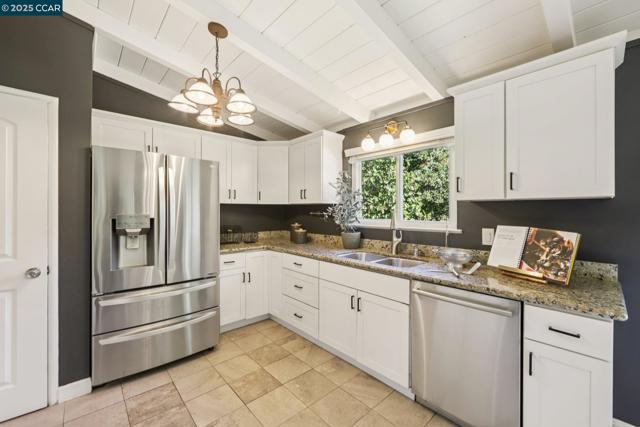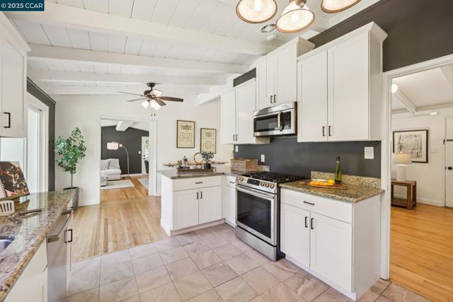 This charming mid-century rancher, nestled in the desirable Buena Vista neighborhood, offers a large corner lot in an excellent school district. The interior boasts refinished hardwood floors and an updated kitchen featuring granite countertops and stainless steel appliances. A new roof, and solar system with battery backup was just installed. Outside, the deep lot provides ample space for gardening, entertaining, and outdoor activities. You'll find inviting garden paths winding through raised garden beds and an iconic potato house. The recently renovated backyard features low-maintenance turf, creating an exceptional space for outdoor gatherings or simply enjoying your morning coffee. Conveniently located, the property offers exceptional proximity to the freeway, BART, various amenities,restaurants and shopping. In addition the home is walking distance to open space/trails, Buena Vista Elementary, Contra Costa Christian School, Larkey Park and the beloved Lindsay Wildlife Experience..