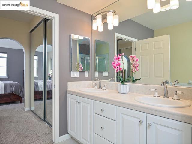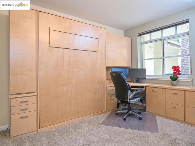 Located on the third floor of the tallest building at Brickyard Landing, this two-bedroom, two-bath condo offers spectacular views of San Francisco, the Bay, and Angel Island. Relax in the solarium as you watch sailboats glide by during the day and the city lights sparkle at night. The modern kitchen features granite countertops and wood cabinetry, opening seamlessly into a bright living-room/dining area anchored by a gas fireplace. The spacious primary bedroom boasts ample closets and an en-suite bathroom with a stall shower and a deep soaking tub. The second bedroom includes a custom built-in Murphy bed and desk, both included in the sale. Solarium and main bedroom windows have been upgraded with premium double-pane glass and new frames. Pinnacle’s expansive backyard—bordering Miller Knox Regional Park—is perfect for picnics or relaxing on the lawn. The unit comes with two parking spaces and 3 additional storage lockers. HOA amenities feature a year-round heated pool, fully equipped gym, saunas, spa, tennis and pickleball courts, a clubhouse, community garden, and EV charging stations. Commuters will appreciate easy access to Berkeley, Oakland, and Marin via I-580, as well as nearby ferry service from Richmond to San Francisco, Amtrak, and BART.
