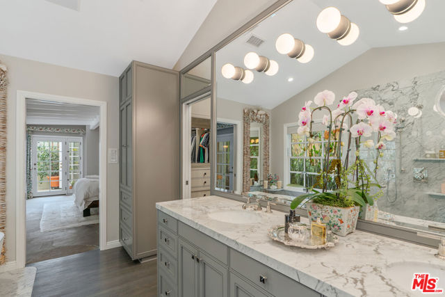 Stunning Sunset Strip Hideaway Tucked away on a quiet cul-de-sac in the heart Sunset Plaza, this completely reimagined Traditional blends timeless elegance with a fresh, updated modern feel. Step inside through a gracious entry into a sunlit living room featuring a marble fireplace, crown moldings, and expansive views of greenery and the cityscape in the distance. The formal dining room opens with French doors to a private outdoor oasis, perfect for intimate dinners or weekend brunches. A main feature of the home is a designer chef's kitchen, overlooking the yard and featuring custom finishes, a breakfast nook, and a full-sized laundry with abundant storage. Each of the three ensuite bedrooms is tucked in its own private wing for ultimate comfort. The primary retreat which overlooks the yard stuns with soaring ceilings, fireplace, a spa-like bath with oversized walk-in shower, soaking tub, and a dream-worthy closet. Outdoors, the lushly landscaped yard is made for entertaining, lounging, and soaking up the California sunshine. A chic patio off the guest suite offers additional views of the city lights - perfect for evening cocktails. Additional highlights include a powder room, central heat/air, hardwood floors, a walk-in tool shed, and a two-car garage. Located minutes from the legendary Sunset Strip, West Hollywood, and Beverly Hills, this is more than a home - it's a lifestyle. Truly a showstopper.