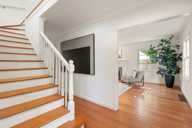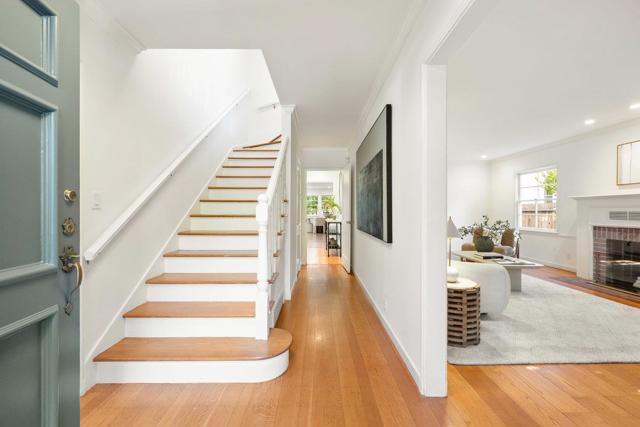 Remodeled and light-filled two-story home in sought-after San Mateo Park, ideally located between Downtown San Mateo and Burlingame Avenue. Behind private gates, 39 El Cerrito Avenue offers a gracious floor plan with a grand living room, formal dining, and a chefs kitchen, with high-end finishes, overlooking the backyard. The professionally designed gardens are alive with trees, color, and visiting butterflies. The primary suite features a high ceiling, dressing area, and spa bath. With two additional bedrooms, a flexible office or guest suite, a mudroom and an attached two-car garage, this home defines modern Peninsula living with timeless appeal.