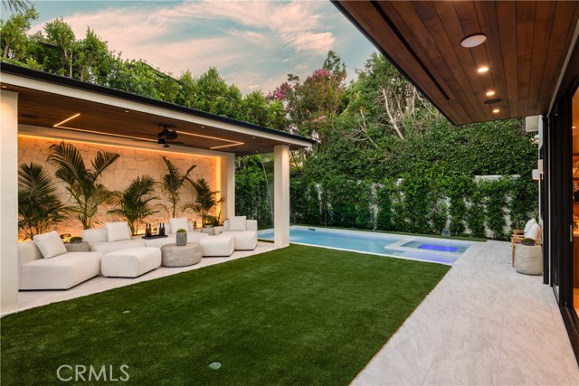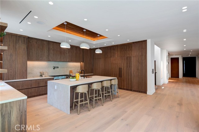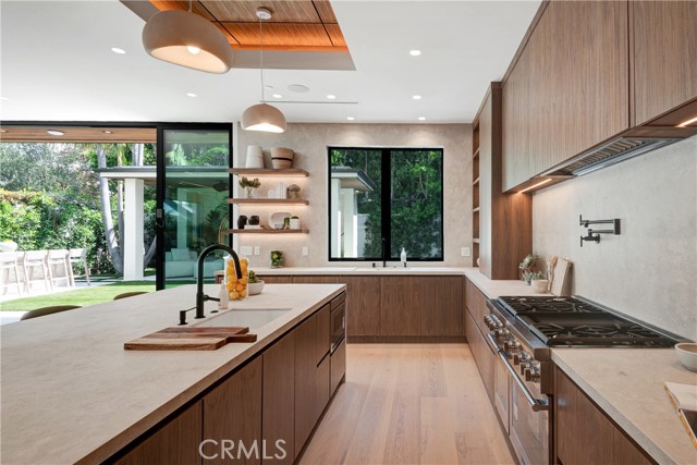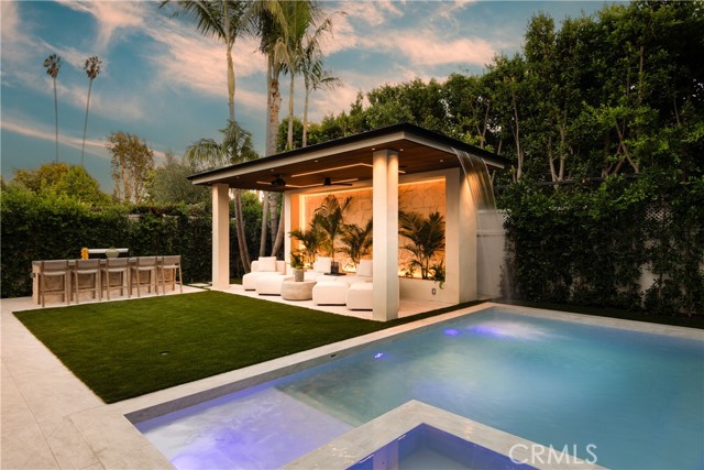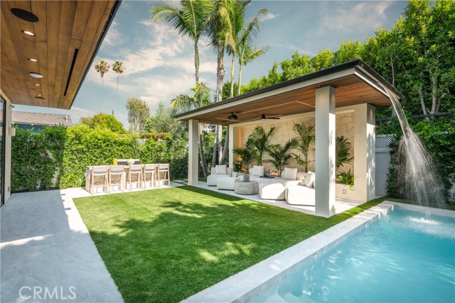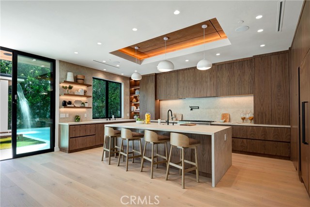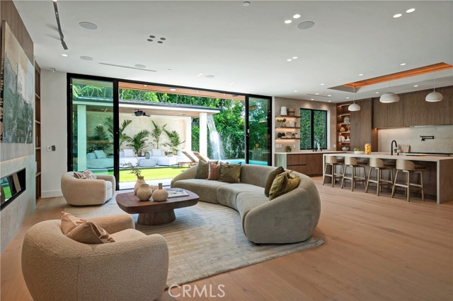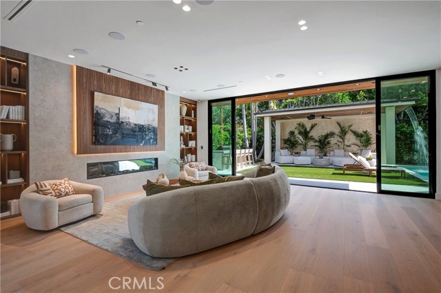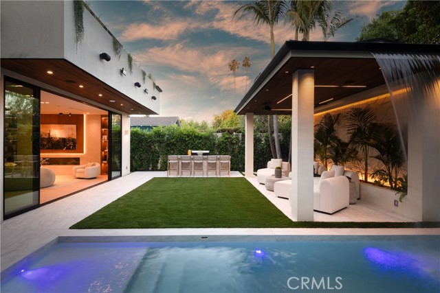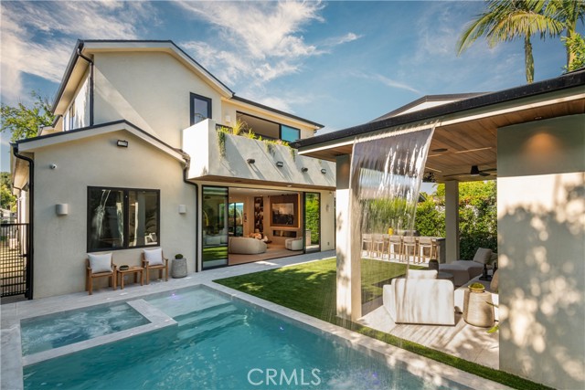 Experience the pinnacle of modern living in this newly constructed organic modern showpiece, where sophistication meets comfort at every turn. Thoughtfully curated with the finest finishes and innovative design elements, this residence offers a seamless blend of elegance, functionality, and style. The open-concept floor plan flows effortlessly from the dining room to the family room, where expansive sliding glass doors open to the backyard. Bathed in natural light, the interiors blur the line between indoor and outdoor living. The gourmet chef’s kitchen is a culinary dream, featuring top-of-the-line appliances, an oversized center island with breakfast bar seating, and a walk-in pantry. A cozy yet stylish theater room provides the perfect setting for family movie nights or entertaining guests. The luxurious primary suite serves as a private retreat, complete with a fireplace, wet bar, custom walk-in closet, and a spacious balcony overlooking serene views. The spa-inspired bathroom offers a soaking tub, oversized walk-in shower, dual vanities, and private balcony access for peaceful morning moments. Step outside to a resort-style backyard oasis showcasing a covered cabana with a waterfall feature, pool and spa, built-in BBQ with bar seating, and an outdoor motorized movie screen with projector—perfect for unforgettable gatherings or relaxing under the stars. Additional highlights include a Control4 smart home system, surround sound throughout, a security camera system, and a prime location near Westfield Fashion Square, Ventura Blvd’s premier dining and shopping, and top-rated private schools. A rare fusion of style, innovation, and comfort—this exceptional home defines the ultimate modern luxury lifestyle.