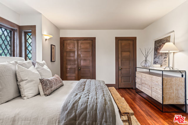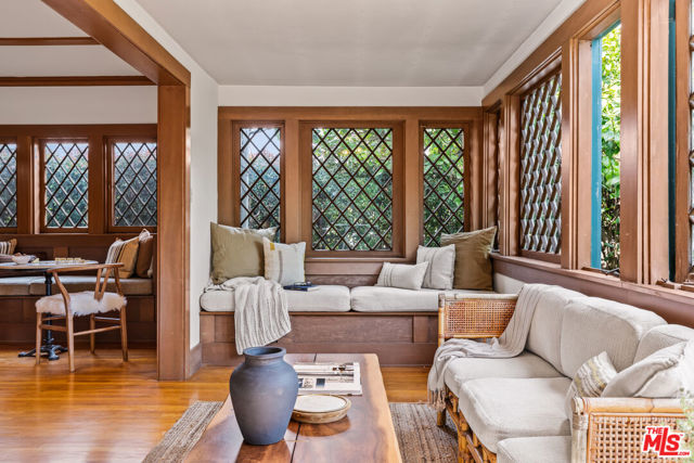 Built in 1910 and set on a double lot, this timeless Venice residence is one of the original homes in the neighborhood and even includes one of the historic boat houses facing the old Grand Canal. Rich in history and original charm, this property offers a rare opportunity to live in one of the most significant and soulful homes in Venice. Situated on a sprawling 5,200+ sqft corner lot just off Abbot Kinney, this exquisite oasis provides both character and comfort in one of the area's most coveted locations. Available furnished (optional) with a **flexible lease term of 6-24 months**, this home offers a truly unique living experience. *Please note: the furniture shown in photos is staged and does not represent the current furnishings in the home.* The main residence features a 4-bedroom, 2-bath layout along with a serene studio space once the original boathouse to the historic canals now reimagined as the perfect guest suite, creative studio, or private office with French doors opening to the lush garden. As you step onto the welcoming front porch and through the double entry doors, you're greeted by a bright, airy living space filled with natural light, intricate woodwork, gleaming hardwood floors, and a cozy fireplace. An adjacent sunroom with built-in seating provides a peaceful nook to relax and unwind. French doors open to a spacious backyard deck that invites you to enjoy the outdoors, while the formal dining room with custom built-ins offers an ideal space for gatherings. The cheerful kitchen is equipped with ample cabinetry, a Sub-Zero refrigerator, and a vintage Merritt O'Keefe stove, blending functionality with vintage charm. Downstairs, the separate studio includes a beautifully tiled bathroom and its own private outdoor area perfect for guests or as a quiet retreat. Upstairs, three light-filled bedrooms offer ample closet space and a serene atmosphere. One of the bedrooms, complete with built-ins, serves beautifully as a home office with direct views of Abbot Kinney. Outside, the expansive garden is a lush sanctuary surrounded by mature greenery and privacy-providing hedges, offering an ideal space to relax in the ocean breeze, entertain friends, or enjoy peaceful solitude under the stars. Perfectly positioned just off Abbot Kinney, this home places you steps away from some of Los Angeles' best coffee shops, restaurants, boutiques, and the iconic Venice Canals and beach. With its historic character, flexible lease options, and unparalleled location, this exceptional property offers the rare chance to experience Venice living at its finest.