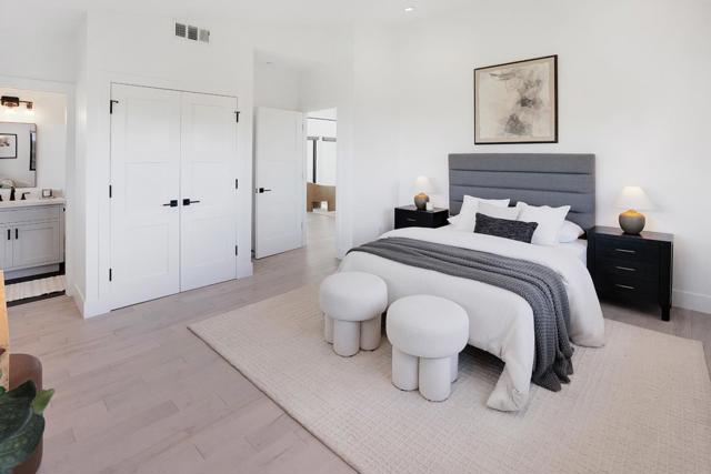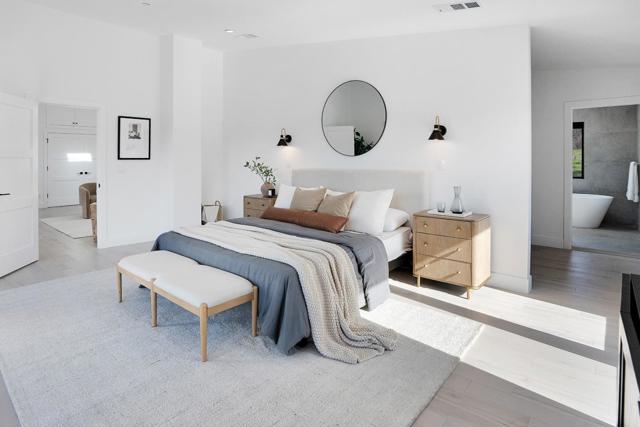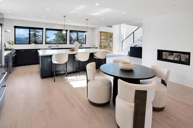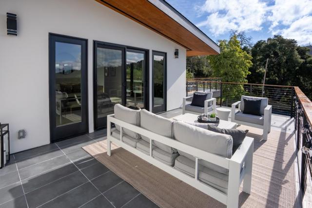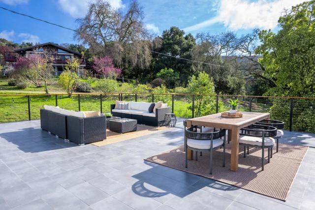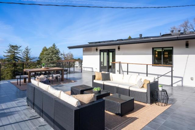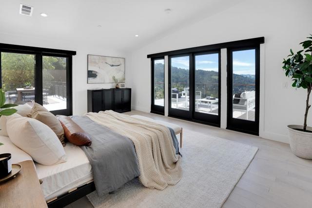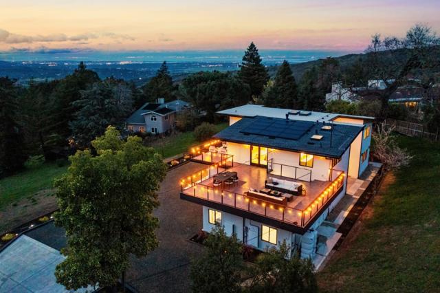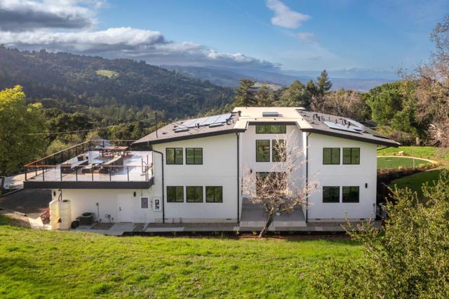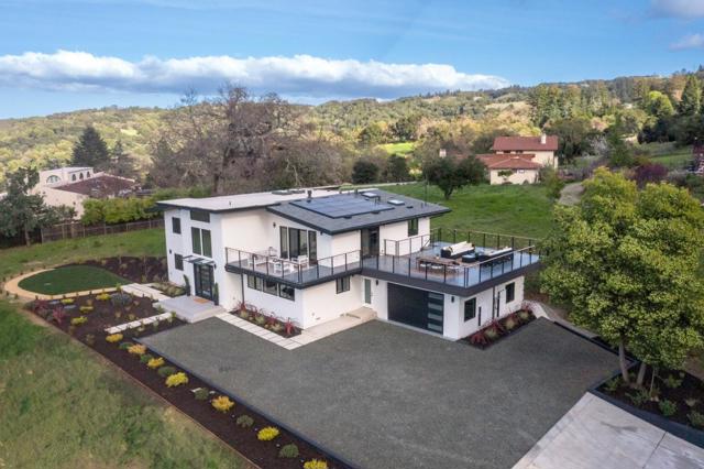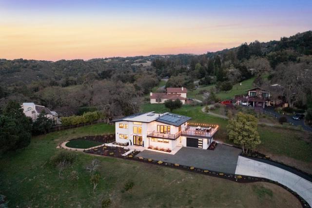 Just completed with final and located in the posh town of Portola Valley this stunning rebuild offers space, views, and peace of mind. With completely new high-end finishes throughout, this Mid-Century Modern masterpiece sits atop a private, lush acre, seamlessly blending modern luxury with natures tranquility. Designed for those who appreciate both serenity and grand entertaining, a true retreat where hawks glide above and nature surrounds you. The expansive open-concept living space flows into a gourmet kitchen, featuring Bertazzoni five-burner gas stove, refrigerator and dishwasher plus gorgous brass fixtures. Floor-to-ceiling windows showcase panoramic views of rolling hills and twinkling city lights, creating an awe-inspiring backdrop. A grand two-story entryway leads to an elegant dining area, warmed by a glass-enclosed gas fireplace. Step onto the rooftop deck, where alfresco dining meets unparalleled stargazing & sunset views. The primary suite is a private sanctuary, complete with a spa-like soaking tub and a bed perfectly positioned for breathtaking sunset views. Four additional en-suite bedrooms offer luxury & privacy for all, each with its own full bath. This new residence is more than a home. It's an experience of modern elegance, timeless design, & natures embrace.