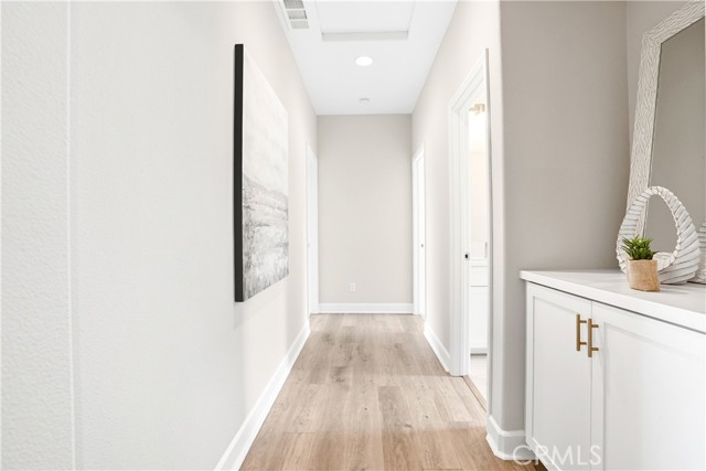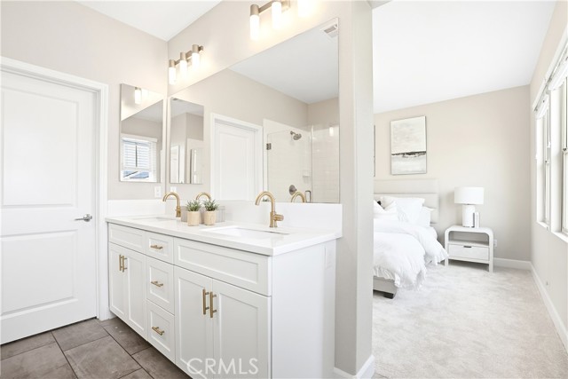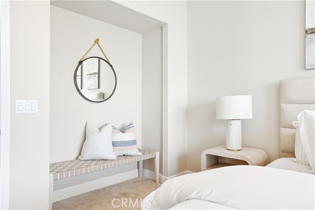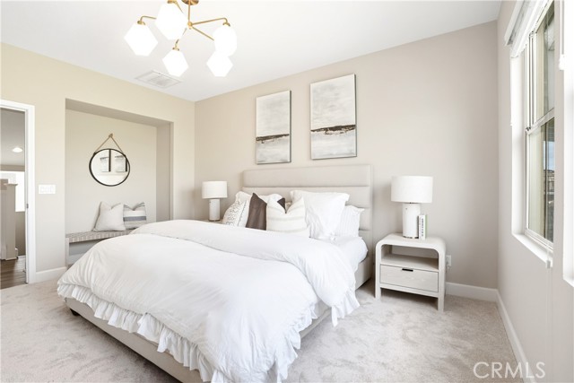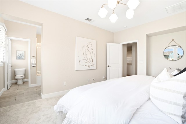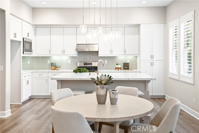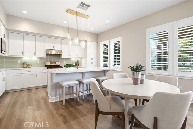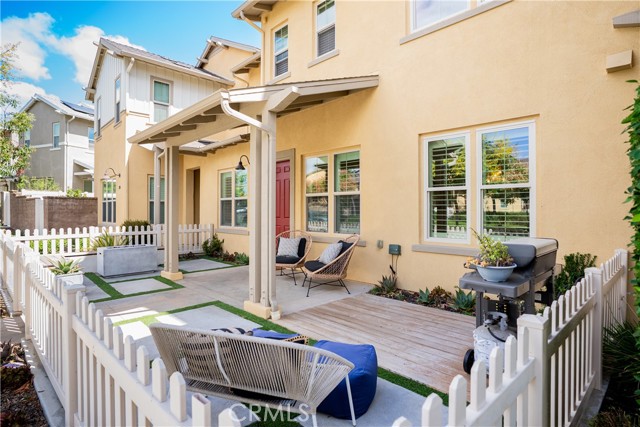 This beautifully upgraded home blends modern design with luxury finishes throughout. From the moment you arrive, you'll be captivated by the spacious front yard, and oversized covered patio—complete with built-in seating and a cozy firepit, perfect for entertaining or enjoying a quiet evening outdoors. Step inside to discover an open-concept layout featuring elegant vinyl plank flooring, fresh interior paint, plush new carpet, recessed lighting, and upgraded baseboards. The bright and airy living room flows effortlessly into a dining area and a chef-inspired kitchen equipped with stainless steel Energy Star appliances, a gas range with hood and griddle, a self-cleaning convection oven, modern tile backsplash, gorgeous quartz countertops, and a large center island with farmhouse sink and breakfast bar. Upstairs, the luxurious primary suite offers a true retreat with a spacious walk-in closet, beautifully upgraded ensuite bathroom with tiled shower and floor, quartz countertops and dual vanities. Two additional bedrooms, a full guest bathroom with dual sinks, and an upper-level laundry room with added cabinetry provide plenty of space and convenience for daily living. The third-level covered rooftop deck boasts panoramic mountain views and is ideal for BBQs, al fresco dining—with a built-in sink, refrigerator, and counter space—or simply lounging with a built-in TV setup. Additional home features include touchless keypad entry, custom window coverings including wood shutters and blinds, double pane windows, upgraded light fixtures, downstairs framed mirror, modern hardware, direct access 2-car garage with overhead storage and ball rack, and Energy Star features integrated throughout the home. You will also have access to award-winning amenities such as baseball fields, playgrounds, a sports park, the Canyon House, Blue Hummingbird Coffeehouse, The Pond, Lagoon and Lake, Camp Out facility, resort-style pools, the farms, an arcade, state-of-the-art workout gyms, dog park, a zipline, splash pads, biking trails, NEV roads, and tennis and pickleball courts (to name a few). Additionally, it is just 15 minutes from the beach and conveniently located near the 241 freeway