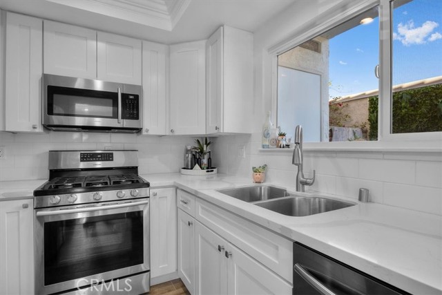 Located in the coveted Ridgegate gated community in the heart of Rancho Palos Verdes, this beautifully remodeled three-bedroom, three-bathroom townhome blends contemporary comfort with timeless style. Positioned at one of the highest points in the complex and as an end unit, the home enjoys exceptional natural light and a quiet, private setting. The inviting living room opens seamlessly to the dining area, accented by a built-in wet bar that makes entertaining easy. The remodeled kitchen features stainless steel appliances, sleek cabinetry, and a sliding glass door leading to a private patio, perfect for relaxing or dining outdoors. Upstairs, the spacious primary suite offers dual closets and a tastefully updated en-suite bathroom. Two additional bedrooms and a full hallway bath complete the upper level. Thoughtful upgrades throughout the home include a remodeled kitchen and bathrooms, engineered wood flooring, newer HVAC system and water heater, and updated appliances, all enhancing both comfort and style. Additional features include direct garage access and a private backyard patio. The gated community provides resort-like amenities including swimming pools, tennis and paddle tennis courts, sports courts, and beautifully maintained landscaped grounds overseen by on-site management and maintenance staff. Ideally located within the award-winning Palos Verdes school district and just moments from shopping, dining, and scenic parks, this home offers a rare combination of modern living, privacy, and convenience in one of Rancho Palos Verdes’ most desirable communities.