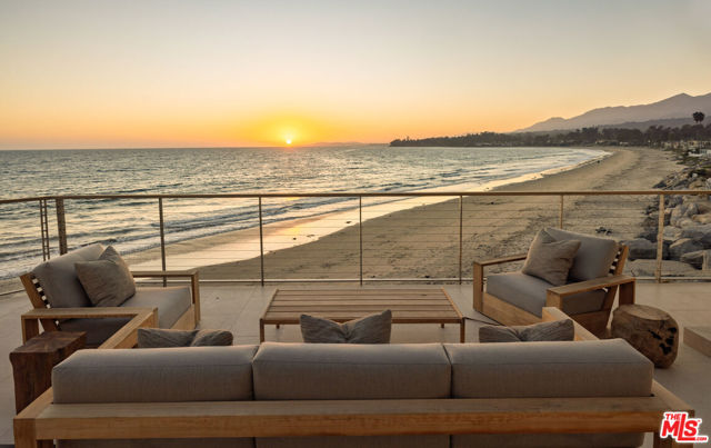 Floating above the Pacific & grounded in stunning design, the next level of Padaro Beach living has arrived. A statement of architectural artistry, this groundbreaking beachfront estate commands approx. 100 feet of rare ocean frontage. An expansive great room anchors the residence, where the kitchen, dining & living spaces all unfold naturally to an oceanfront terrace. The primary suite is private & luxurious w a large closet & spa bath. The resort living continues w 4 add'l ocean view bedroom suites, a gym, theatre & wine cellar. Sunlit patios, a fire pit, spa & private guest house are surrounded by lush gardens, creating a private oasis just steps from the sand. Welcome to the next wave of coastal living, where style & sea converge in a singular expression of California luxury