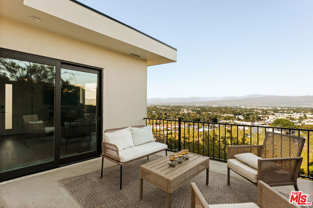 High above Studio City's coveted Silver Triangle, this AIA-designed modern residence by renowned architect Jon Brouse is a one-of-a-kind architectural statement that captures the drama and tranquility of Southern California living. South of Ventura Boulevard and masterfully oriented to command panoramic sunrise-to-sunset city-light views, the home is an inspired fusion of sculptural form, volume, and light.Spanning approximately 2,800 square feet with a separate 600-square-foot ADU, the two-story residence boasts five bedrooms and five baths, all framed within a bold architectural silhouette defined by soaring 18-foot ceilings, expansive walls of glass, and fluid indoor-outdoor living to multiple large viewing decks and a manicured backyard. At the heart of the main 2,200-square-foot residence lies a two-story, gallery-inspired Great Room -- a spectacular volume of space designed for art and atmosphere, anchored by a full wall of glass and a striking linear fireplace. The chef-inspired designer kitchen seamlessly blends functionality and style with quartz countertops, high-end appliances, and center-island seating, opening effortlessly to the dining area and corner window views that frame the horizon.The thoughtful floor plan offers two bedrooms upstairs and two down, including a main-floor ensuite and an additional guest bedroom and bath for ultimate flexibility. Upstairs, a suspended walkway divides the private suites, each positioned to capture the home's most breathtaking vantages -- from radiant morning light to glittering nighttime vistas. The primary suite is a sanctuary unto itself, featuring a massive private balcony, a custom-fitted walk-in closet, and a spa-like bath with dual vanities and walls of glass that invite the outdoors in. A separate one-bedroom, one-bath ADU with its own washer, dryer, and private viewing deck mirrors the home's dramatic outlooks, providing an ideal setting for guests, a music studio, or income potential.Sculptural, light-filled, and profoundly livable, this architectural gem stands as a testament to Brouse's signature visiona residence that celebrates artistry, space, and the boundless beauty of the hills that surround it.