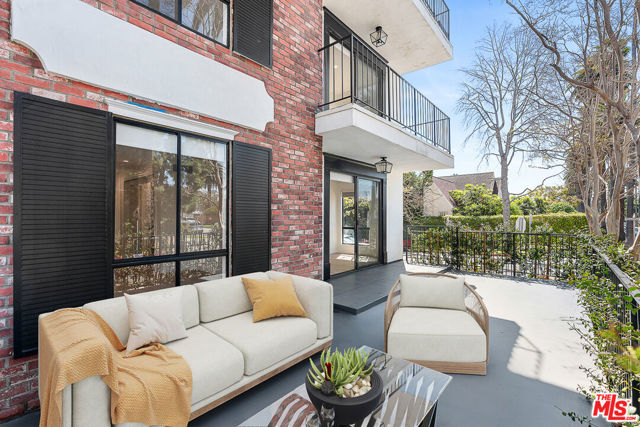 This brand-new 2 bedroom & 2 bathroom remodel delivers a rare indoor-outdoor lifestyle with a private front yard plus a front-facing about 400 square-foot terrace all on Beverly Hills' iconic, palm-lined boulevard. The corner 2 bedroom & 2 bathroom residence has soaring ceilings and all-day natural light with an open living & dining flow to the terrace for effortless entertaining. A designer kitchen features sleek cabinetry, quartz counters, and stainless Samsung appliances; both bathrooms are newly finished with contemporary fixtures and tile. Additional upgrades include recessed lighting, new wide-plank flooring, and in-unit washer & dryer. Enjoy premier walkability just moments to South Beverly Drive's cafes, restaurants, boutiques, and everyday conveniences plus Beverly Vista Middle School nearby. A rare combination of privacy, outdoor space, and central Beverly Hills convenience on the iconic Palm Drive.