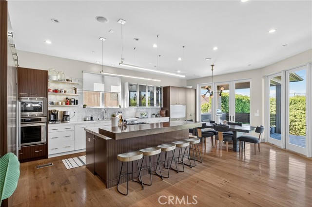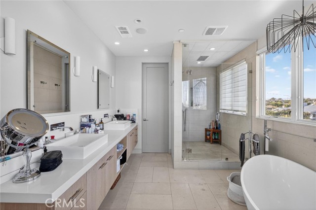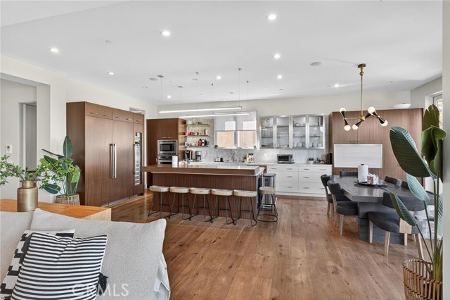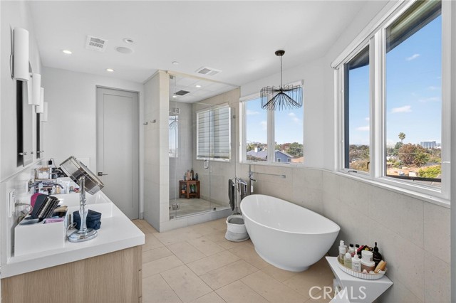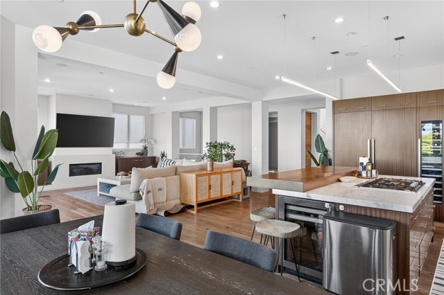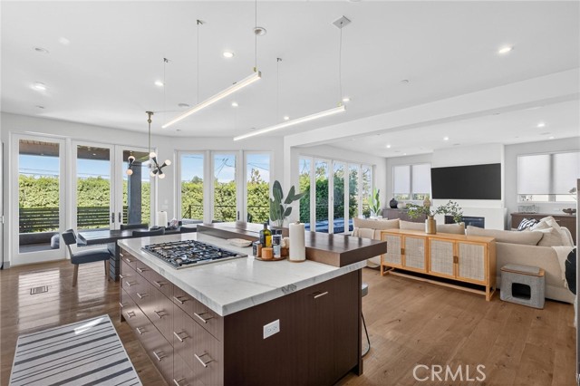 Light, space, and modern design converge in this Tomaro-designed coastal residence—where every detail feels intentional and every moment feels elevated. Spanning more than 5,200 sq ft across three levels, this home captures panoramic city and mountain views that transform with the day’s light. Inside, dramatic 10-foot ceilings and French oak floors guide you through sunlit spaces crafted for both relaxation and entertaining. The formal living and dining rooms flow effortlessly toward a gourmet kitchen featuring marble countertops, a walnut breakfast bar, Thermador appliances, and a side-by-side refrigerator, freezer, and wine fridge. Through expansive glass doors, the kitchen and breakfast nook open to a 400 sq ft view deck and covered patio with built-in BBQ—an entertainer’s dream overlooking a large, private backyard with room for a pool. Upstairs, four ensuite bedrooms include a primary suite that feels like a sanctuary. Here, vaulted ceilings, a limestone fireplace, dual walk-in closets, and a spa-worthy bath complement a private 120 sq ft terrace with sweeping views of the LA Basin and distant mountains. Downstairs, a versatile lower level offers a second family room, office, library, or gym, temperature-controlled wine cellar, and fifth bedroom suite—ideal for guests or multigenerational living. Additional highlights include dual high-efficiency HVAC systems, a three-car attached garage, custom lighting, built-in cabinetry, and elegant limestone and quartz finishes throughout. Located moments from Meadows Elementary, MB Middle School, Pollywog Park, and just minutes from the beach, this address combines the serenity of suburban luxury with the energy of Manhattan Beach living.