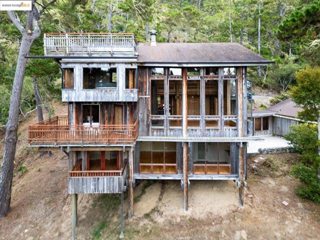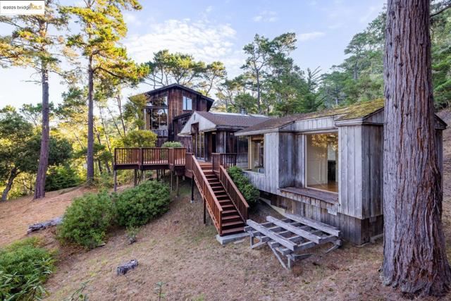 This extraordinary Carmel Highlands DUPLEX is a rare offering steeped in history, artistry and timeless coastal beauty. 2 Homes connected by a long hall. Originally built as a 915 sq ft cabin, the home was thoughtfully expanded in 1975 with a striking architectural addition designed by Peter Lee and crafted by master builder Stephen Trapkus alongside the current family who have cherished it for over 50 years. The result is a soulful blend of rustic charm and architectural elegance, where soaring wood-beamed ceilings, rich hardwood floors, and walls of glass frame sweeping wooded and peek-a-boo ocean views. Designed to live flexibly, the home can be enjoyed as two or three separate units or one expansive family retreat. Natural light floods every room, creating warm and inviting interiors that harmonize with the surrounding redwoods, Monterey pines, and rugged coastline. Carmel Highlands itself has a storied legacy, envisioned in 1915 by Frank Devendorf as a creative haven for artists, writers, and sculptors. Now enhanced with modern amenities, including high-speed internet for those seeking both seclusion and connectivity. This property embodies the magic of Carmel Highlands where history, art, and nature converge. Private Beach Access! Welcome Home!