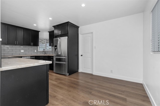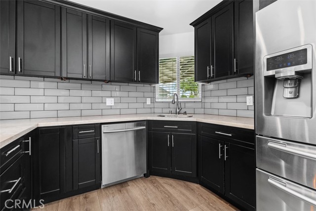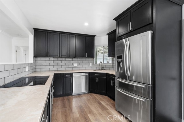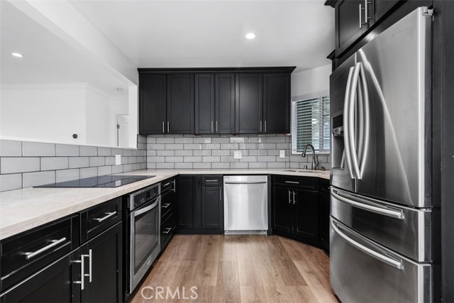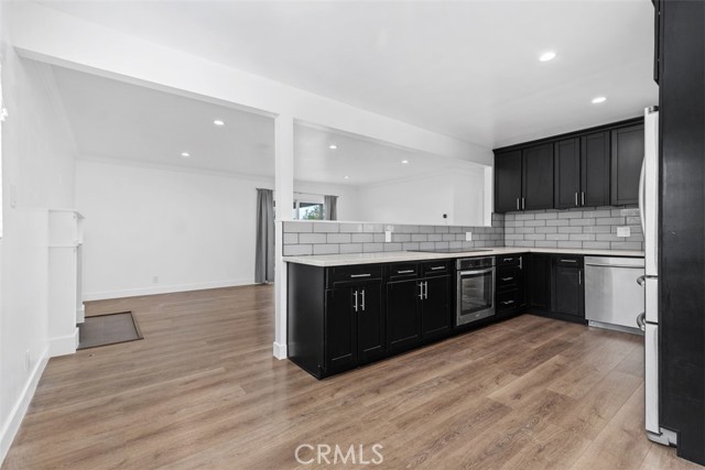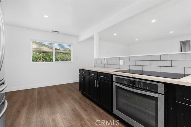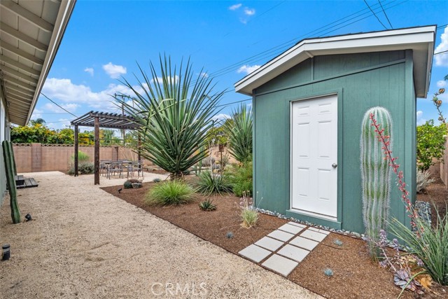 Turn-key remodeled home in the heart of Orange ~ Large rear yard with drought resistant landscaping front & rear / drip system / block walls / generous storage shed / accent lighting ~ New kitchen with stainless appliances which is open to living area and adjacent dining area ~ Remodeled baths with subway tile ~ Wood look laminate flooring throughout with exception of baths ~ Extensive recessed lighting / Newer vinyl windows / Crown moldings / 6” baseboards / Custom fireplace mantel ~ Newer HVAC system and wall insulation ~ Resurfaced exterior stucco and new fascia ~ Closet organizers in bedrooms ~ Cute primary bath with tiled walk-in shower ~ Raised panel doors with black hardware/fixtures ~ Central air ~ Expansive driveway to direct access 2-car garage with epoxy flooring and utility sink ~ Washer/dryer/refrigerator included ~ Minutes to nearby schools-freeways-shopping-restaurants-Old Towne Orange-Chapman College