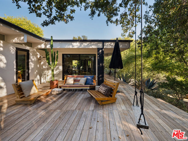 Incredible Mid-Century Modern compound situated on over half an acre in the coveted upper foothills of Altadena. Conceived as a private creative retreat, the property features two distinct architect-designed residences built for the original owner, noted sculptor David Green. The main residence, designed in 1964 by Randall Makinson, AIA (renowned for his work with the Gamble House), embodies the ideals of California modernism with sculpted ceilings, clerestory windows, and walls of glass opening to a full-length deck that captures sweeping canyon vistas. The home offers 3 bedrooms and 2 baths, blending artistry and livability with seamless indoor-outdoor flow. The separate 1-bedroom 1-bath guest house, designed in 1949 by Frederick Monhoff, AIA, provides its own architectural pedigree and flexible use as a studio, office, or private retreat. Lush landscaping creates a sense of privacy and sanctuary. Both updated by interior designer Matthew Sullivan (AQQ Design). Remarkably, the property was spared in the January 2025 Altadena fire sits thriving garden and thoughtful site planning offering a natural shield making it one of the rare foothill estates to emerge intact. A once-in-a-generation opportunity to own a pedigreed architectural compound with history, beauty, and resilience in one of Altadena's most desirable settings.