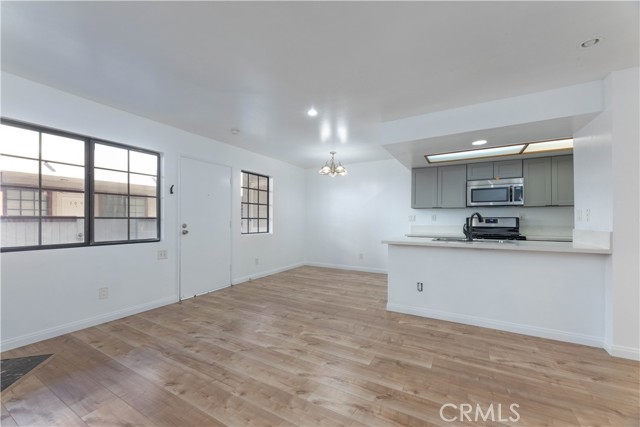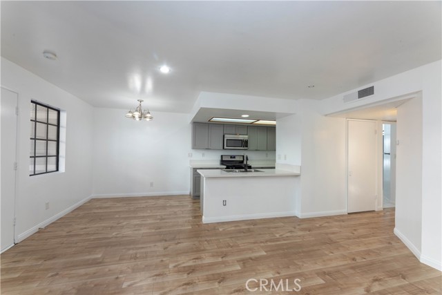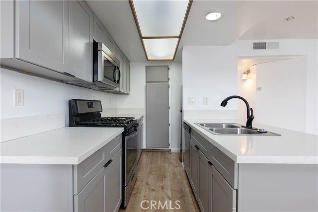 This lower-level 1 bedroom, 1 bathroom condo offers 687 square feet of practical living space with a front patio that faces the courtyard. The living room includes a gas fireplace, recessed lighting and laminate flooring throughout. The kitchen features updated cabinetry, quartz countertops and stainless steel appliances. The bedroom includes a walk-in closet, and the bathroom has been refreshed with an updated vanity, mirror and light fixture. The interior has been freshly painted. Additional features include in-unit laundry hookups, two tandem parking spaces in gated underground parking and a private storage unit. Conveniently located near the 405 and 101 freeways, Lake Balboa Park, Woodley Golf Course, Van Nuys Airport, and Cal State Northridge. Great opportunity for a starter home or for anyone looking to downsize.
