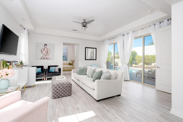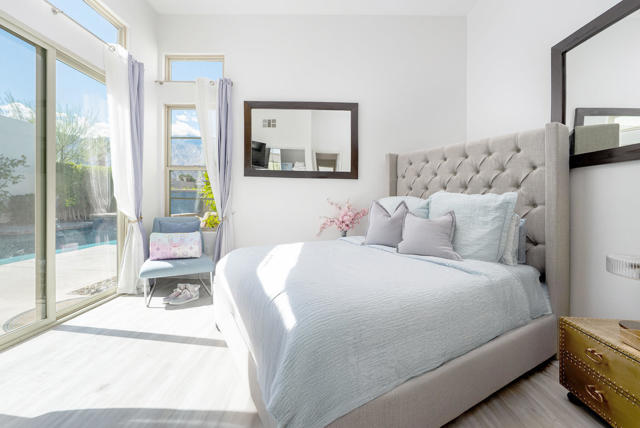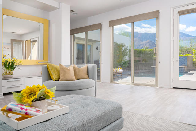 Nestled in the heart of Palm Springs on fee land, 2684 Isabella embodies the essence of desert living. Spanning 3,056 square feet, this four-bedroom, four and one half bath residence seamlessly blends contemporary architecture with the desert's beauty. The home's sleek, front-loaded design makes a bold impression, with a modern floor plan that optimizes indoor-outdoor living and tremendous mountain views. Inside a bright, open floor plan is flooded with natural light through expansive walls of glass on both sides of the enormous great room. High ceilings enhance the volume and space in every room. The main living area flows effortlessly between kitchen, dining, two full living areas - ideal for both everyday comfort and entertaining. The gourmet kitchen serves as the heart of the home, featuring an oversized island and tons of storage, including a walk-in pantry perfect for gatherings with friends and family.The primary suite features direct outdoor access, a full living area, huge walk-in closet, and a resort-like bath with a soaking tub and glass-enclosed shower. Two guest bedrooms are en suite and open to the outdoor living areas.Outdoor living is where this home shines - The west-facing front yard provides a spectacular setting to enjoy the desert sunsets, complete with lounge areas, a sparkling pool, and plenty of open space for relaxation and entertaining. Enclave at Sunrise is a small collection of desert modern homes that are moments from all that Palm Springs has to offer in shopping, dining, entertainment and architecture.