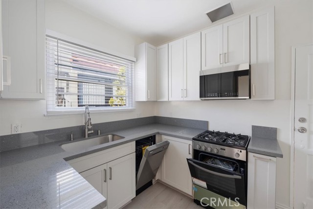 Amazing opportunity to live in a prime, highly sought-after Santa Monica location. This residence features a BRAND-NEW REMODELED KITCHEN with NEW stainless steel APPLIANCES and quartz countertops. The bright and efficient 2 bed / 1 bath layout includes access to a shared outdoor grassy yard. The living room showcases original hardwood flooring, while the kitchen features new vinyl flooring. All windows have been updated with new window treatments and/or curtain rods. The bathroom includes both a tub and a shower. The unit also offers in-home washer/dryer hookups, with an additional on-site laundry facility available for residents. A private detached one-car garage is included and dedicated exclusively to this unit, with ample additional street parking available.. Located within the Roosevelt Elementary and Lincoln Middle School districts, and just moments from Montana Avenue’s boutiques, cafés, restaurants, and shops - this unit truly embodies the best of Santa Monica living. *A couple of photos have been digitally staged.