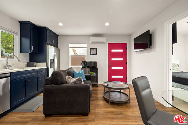 This detached 2-bedroom, 1-bath home offers privacy, comfort, and modern convenience. Both bedrooms include blackout shades for improved rest, and the unit is equipped with laundry in-unit, three Smart TVs, and the option to include all towels, linens, and kitchenware. The home features air conditioning, double-paned windows, and a functional floor plan with an updated kitchen. The fully fenced private yard includes bistro string lighting, an outdoor dining area, and rocking chairs, creating a relaxed outdoor living space. Ring cameras are installed on the property for added security. The home may be delivered furnished or unfurnished. Conveniently positioned near West Adams, Culver City, USC, SoFi Stadium, Exposition Park, Kenneth Hahn State Recreation Area, and the K Line Metro which connects to Downtown LA, Santa Monica, Hollywood, and will soon link to LAX. This pet-friendly property offers an ideal blend of comfort and accessibility.