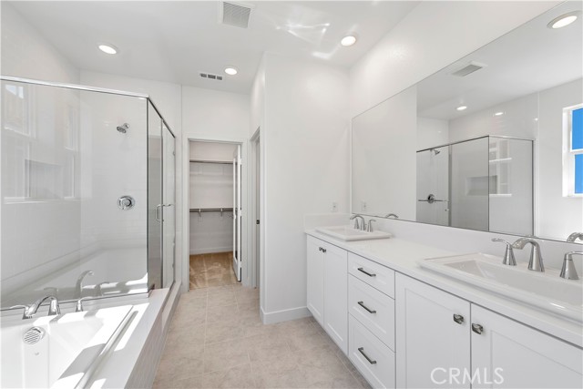 This beautiful 4 bedroom home in Serrano Summit community welcomes you into an open concept first floor with large windows, high ceilings and ample privacy. Private guest half bath rounds out the foyer into the oversize great room and kitchen. The outstanding second floor layout offers four bedrooms, two and a half bathrooms. The gourmet, white kitchen boast stainless steel appliances and soft closing drawers, marble inspired Quartz counters, custom shutters, an oversize island and a large slider out to your private backyard. The professionally landscaped backyard makes indoor outdoor living off the main entertainment space a dream and includes artificial turf and hardscape. Three car attached garage makes parking and storage simple. This property has a variety of modern upgrades including; tankless water heater, whole house fan, high energy efficiency HVAC system, built in Wifi routers to make running a smart home smooth, video door bell, in-home tubing system, Smart thermostat. The second floor features ample natural light and wide hallways; the primary suite, three large secondary bedrooms, additional guest bath and the laundry room. The primary suite showcases an upgraded en-suite bathroom with glass enclosed shower, soaking tub, dual raised sink vanities and an ample closet. This property's interior is being freshly painted. This home is close to retail shopping, dining, convenient access to Toll Road, and award winning schools. Newly built clubhouse with many amenities, including a resort-style clubhouse with beach-entry pool, hydro-therapy spa, BBQs, and pickle ball courts, plus additional neighborhood parks with basketball courts, playgrounds, and more.