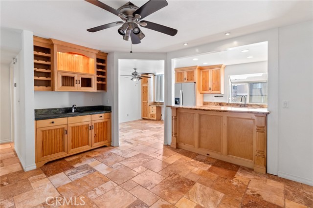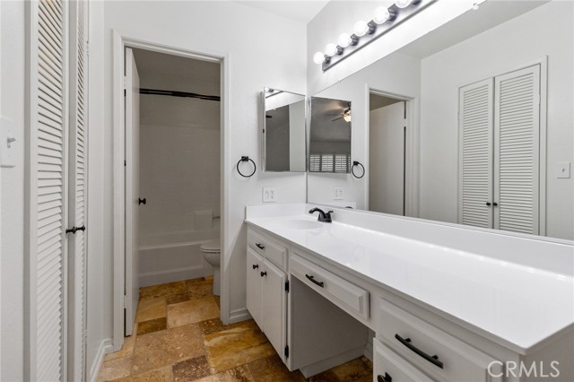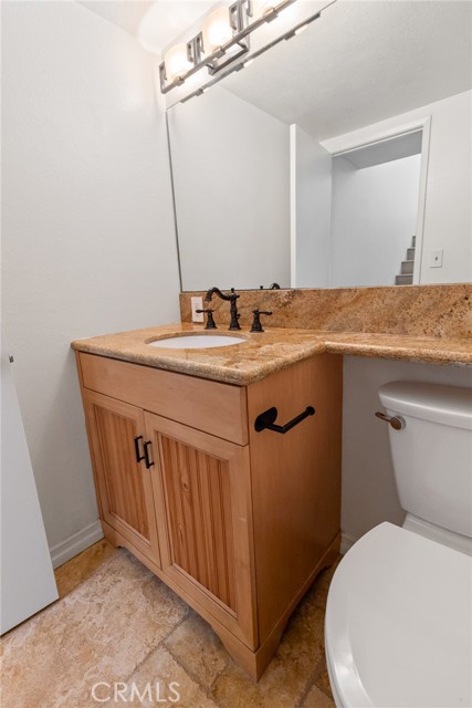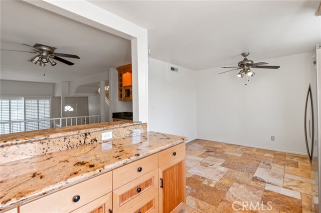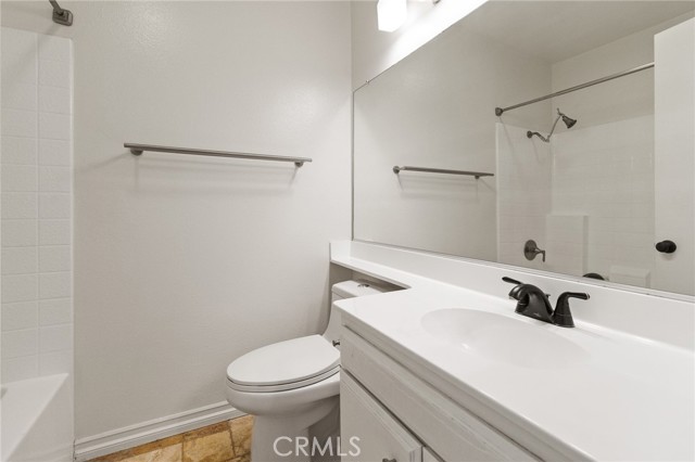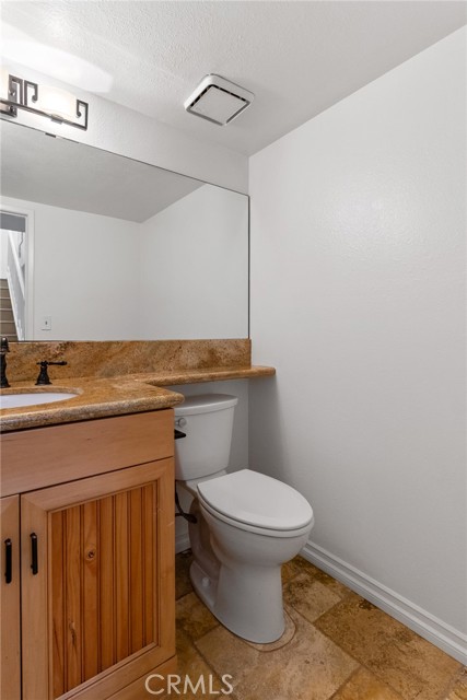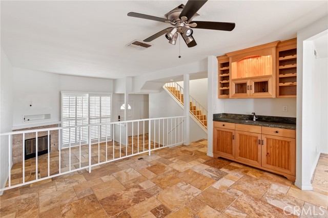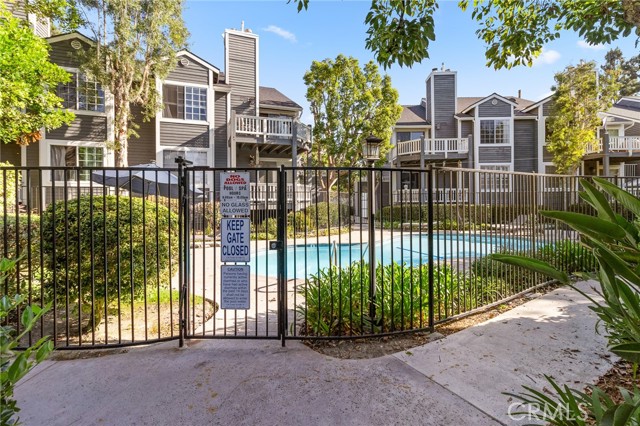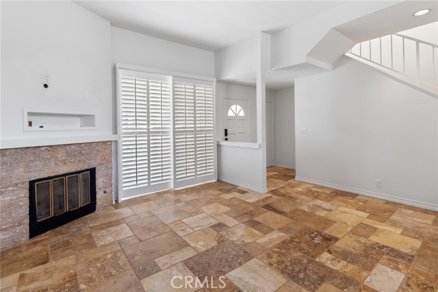 OPEN FLOOR PLAN UNIT AND WALKING DISTANCE TO THE OC FAIRGROUNDS! Step inside and you'll immediately notice the open floor plan and windows throughout that let in plenty of natural light. Upgraded with travertine flooring in the main living, dining, and kitchen areas and brand new LVP flooring for stairs and bedrooms. The living room offers a fireplace, perfect to cozy up to on those cold nights, with a sliding patio door with direct access to your own outdoor patio space, ideal for entertaining guests, and a separate dining area. The kitchen features a granite countertop, stainless steel appliances, a built-in microwave, and recessed lighting. The home has 3 bedrooms and 2.5 baths. The master bedroom offers its own bathroom, ceiling fan, and plantation shutters. Washer and Dryer hookups are inside the garage. Direct 2-car garage access with guest parking located behind the garages. A few steps out is the pool and spa. Conveniently located near many restaurants, shops, and entertainment, and within walking distance to the OC Fairgrounds. Easy access to the 55 freeway and a short drive to the beach.