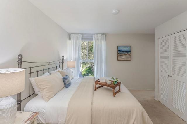 **Furnished but, renters will need to bring their own dishes, glassware, utensils, pots and pans, etc. and all bed linens.** An ideal Carmel location central to everything on the Monterey Peninsula. The complex includes tennis courts and a pool in a beautiful, serene forested setting. This south-west facing unit was recently upgraded with new flooring, windows & slider door, upgraded electrical and fixtures, new paint throughout, refurbished staircase, updated kitchen including appliances and updated bathrooms. The vaulted living room opens to a deck overlooking green space. Off the kitchen an enclosed patio can be enjoyed for barbecues and outdoor dining. Bedrooms and Bathrooms: Upstairs, both bedrooms have a private en-suite bathroom and plenty of closet space. Bedroom #1 has a king bed and an en-suite bathroom with a shower over tub. Bedroom #2 has a queen bed and an en-suite bathroom with a small shower. Property Characteristics: Furnished but...tenants will need to bring their own kitchen goods and bedding Outdoor Patio with Furniture and Fire Pit Table Kitchen w/ Stainless Steel Appliances 2 Bedrooms with 2 Bathrooms Sleeps up to 4 Guests 2 HDTVs - Living Room & Master Bedroom Internet DSL/Wifi Available Washer and Dryer 1 Car Garage Pet Friendly with Approval
