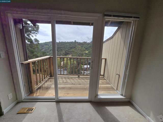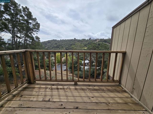 Beautifully updated, this Moraga townhome offers serene hillside views and a peaceful setting. The kitchen, complete with custom cabinetry and granite countertops, features a breakfast bar that opens to the dining area—perfect for everyday living and entertaining. The spacious living room boasts vaulted ceilings, a wood-burning fireplace, and access to a welcoming deck with tranquil views of the hills of Moraga. Downstairs, you'll find two generously sized bedrooms, each with ample closet space. The primary bedroom includes a sliding door leading to a private deck, ideal for morning coffee or evening relaxation. The stylish full bath features a large walk-in shower and a convenient in-unit stackable washer & dryer. Just minutes from top-rated Moraga schools, St. Mary's College, downtown, shopping, scenic trails, and more. One covered parking space is included. Rent includes water, sewer, garbage and grounds maintenance. Renter pays for gas, electricity and internet.