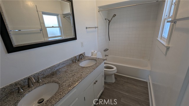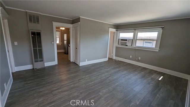 Charming 2 bedroom & 1 bath upstairs unit - all on one level! Comes with a detached one car garage with an automatic opener. This unit has an open floor plan and is in great condition - ready for move-in. Designer waterproof Luxury Vinyl Plank flooring and paint. Window A/C unit with remote. Large front porch and another private porch off one of the bedrooms. Stainless steel appliances in the kitchen. STAINLESS STEEL REFRIGERATOR INCLUDED. Two sinks in the nicely appointed bathroom. Some nice vintage finishes are still present in this private unit. Water and trash are included. Walking distance to Anaheim High School, Anaheim Central Library, Downtown Anaheim with tons of great dining and shopping options. Super Walkable! This one is a MUST SEE!