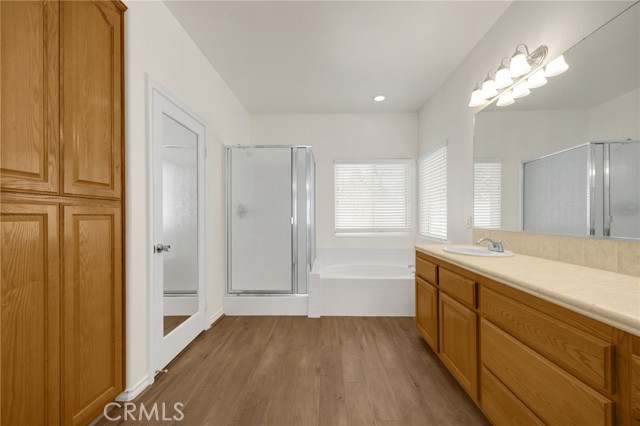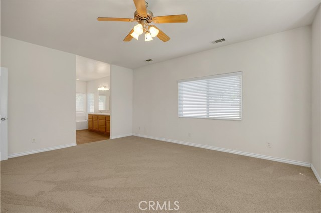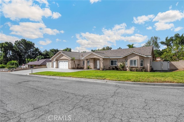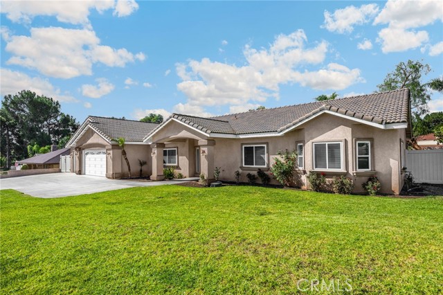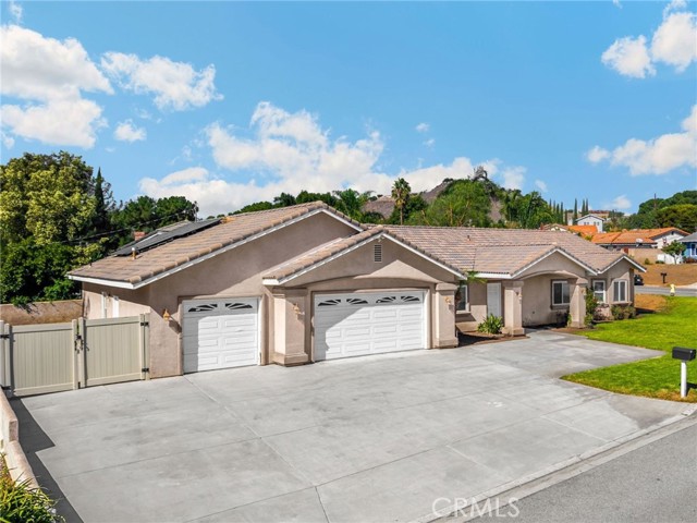 Located on a spacious corner lot in the desirable Jurupa Hills Country Club neighborhood, this Newer, beautifully maintained single-story home, built in 2003, offers the perfect blend of comfort, efficiency, and functionality. Featuring 4 bedrooms and 3 full baths—including Two Primary Suites on opposite sides of the home—it’s ideal for multi-generational living or hosting guests. Enjoy a large living room with a cozy fireplace and a formal dining room, perfect for entertaining. The kitchen boasts granite counters, a breakfast bar, and ample cabinet space. Brand New Carpet throughout enhances the home's fresh, move-in-ready appeal, while Owned Solar Panels provide long-term energy savings and increased efficiency. The main suite includes a walk-in closet, dual vanities, soaking tub, and a separate shower. Additional highlights include an inside laundry room, 3-car garage, large driveway, and RV parking.
