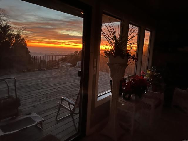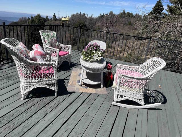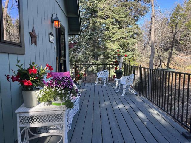 Escape to the Mountain Sunset Chalet on Palomar Mountain, where quiet beauty, fresh mountain air, and timeless charm create an inviting retreat from the everyday world. Tucked among towering Black Oak and Fir trees on a private half-acre, this cozy and comfortable home welcomes you with warmth the moment you arrive. A paved driveway winds up to the chalet, offering easy year-round access, while the peaceful setting promises privacy and a slower pace of life. ~Inside, sunlight filters through a dramatic wall of windows, filling the open living area with golden light and revealing views that stretch across the forested ridge lines to the distant ocean on a clear day. Wood finished ceilings and a striking rock fireplace set the tone for relaxed mountain living, while the home’s thoughtful upgrades—including a dual-fuel cook stove, newer refrigerator and washer, and three sources of heat (fireplace, furnace, and electric wall heaters)—ensure both comfort and convenience in every season. ~It’s the seamless indoor-outdoor lifestyle that truly sets this home apart. Just beyond the great room, an expansive, newly built wraparound deck plus second story balcony — totaling approximately 800 square feet — extends the living space outdoors, offering the perfect place to enjoy morning coffee among the trees, long afternoons basking in the sunshine, or unforgettable sunset dinners with friends beneath a sky full of stars. The property is easy to maintain, with natural landscaping, usable land, and even room for an RV, making it ideal for weekend explorers or full-time residents. ~Beyond the deck, a small orchard produces seasonal fruit—pear, apricot, plum, and cherry trees—while the fenced area provides a safe space for pets to roam. The forest gently unfolds beyond the back of the property, inviting quiet walks and peaceful reflection among the oaks. ~Despite the privacy, this mountain retreat is close to everything Palomar Mountain has to offer—world-class stargazing at the Palomar Observatory, hiking in Palomar Mountain State Park, fishing at Lake Henshaw, and the historic charm of Julian just a scenic drive away. ~With its welcoming feel, well-planned comforts, and breathtaking natural surroundings, the Mountain Sunset Chalet is more than a home—it’s a lifestyle of mountain serenity, connection to nature, and simple pleasures shared with the people who matter most. Here, mornings come with birdsong, evenings end by the fire, and every day holds the promise of peace.
