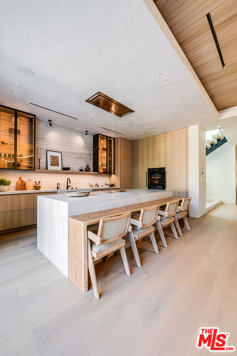 Crafted with exquisite detail, this brand-new construction home brings a breath of fresh air to the luxury modern aesthetic. Meticulously pieced together with the finest imported Italian finishes, Marseilles hardwood floors, and Venetian plaster throughout, this timeless home captures the epitome of design, comfort, and functionality. Centrally located and just minutes from West Hollywood, The Grove, Erewhon, and Whole Foods, 524 Sierra Bonita offers convenience to Los Angeles' premier restaurants, shopping centers, and entertainment. Each bedroom boasts its own private bath, with the primary suite offering two sizable walk-in closets, a private patio, and a deep freestanding bathtub with a rainfall shower. The open-concept floor plan creates an optimal environment for entertaining family and friends, with floor-to-ceiling Fleetwood glass doors that open to a private backyard featuring a stunning cabana, pool, and spa. The kitchen includes high-end Italian cabinetry by DI Group, white Italian stone, and Miele appliances. With natural light bathing the interior's rich, warm, and neutral tones, this home exudes luxury, timelessness, and rare elegance.