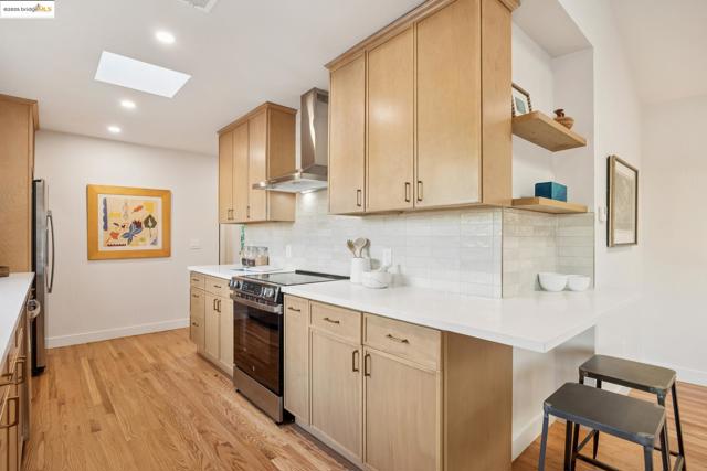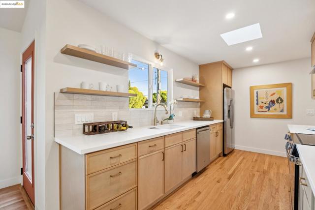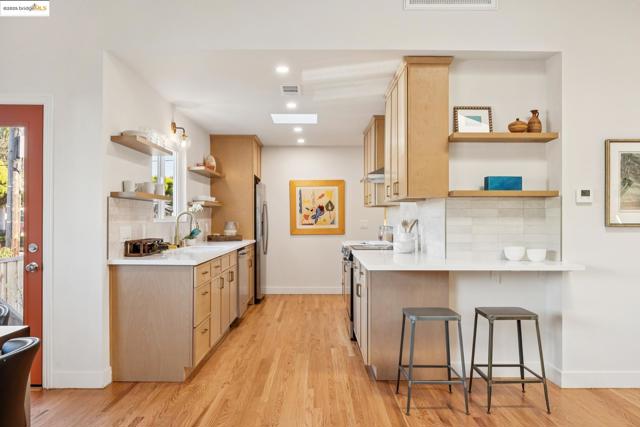 Beautifully appointed and spacious South Berkeley home features one-level living and a stunning garden! Every inch of this home has been renovated (with permits) in 2025, and it shows. From the vaulted ceiling with skylights to the elegant wood kitchen cabinets, from the expansive en suite bathroom to the ideal layout, this home leaves little to be desired. Three bedrooms and three bathrooms offer space for all, and this home features ample storage both inside and in the gracious attached two-car garage. The verdant garden features spaces for dining al fresco and kicking a ball around, the perfect space to entertain and enjoy the indoor-outdoor connection! Updates in 2025 include new roof + skylights, 200 amp panel and electrical, all new dual-pane windows, stainless steel appliances, new furnace, structural and seismic work per City of Berkeley requirements, and more! Near local favorites like San Pablo park, Ashby BART, Berkeley Bowl West, and Berkeley Ironworks climbing gym, this home is perfectly located.
