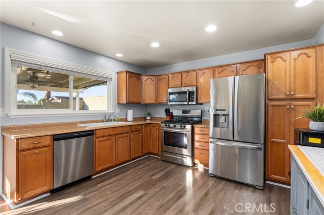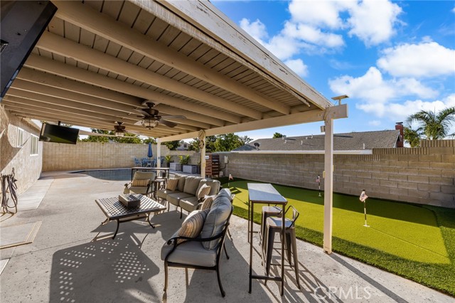Tucked at the end of a quiet cul-de-sac, this charming 3-bedroom, 2-bath home offers the perfect blend of relaxation and recreation in a great Rancho Cucamonga neighborhood. Tucked at the end of a quiet cul-de-sac, this charming 3-bedroom, 2-bath home offers the perfect blend of relaxation and recreation in a great, family-friendly Rancho Cucamonga neighborhood. Inside, you’ll find a bright and inviting layout with natural light flowing through the living spaces. The spacious kitchen features updated cabinetry, ample counter space, and room for everyone to gather, ideal for home-cooked meals, morning coffee, or holiday baking. The cozy family room, complete with a beautiful fireplace, creates a warm and welcoming spot for movie nights or relaxing with loved ones. Down the hall, the bedrooms offer comfortable retreats, and the primary suite provides a peaceful space to unwind at the end of the day. Step outside to your private backyard paradise, complete with a sparkling pool, covered patio, and your very own putting green for a little friendly competition. With RV parking on the side, there’s plenty of space for all your toys and extra storage too. Located close to Terra Vista Town Center, parks, and award-winning schools, this home checks all the boxes for comfort and convenience. A fun and functional home full of charm with a backyard built for making memories. Come see why life on Balsa Street feels just right!