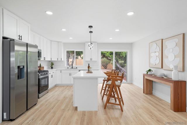 Beautifully renovated 4-bed / 2-bath single-story home with a 2-car attached garage on an oversized 8,833 sq ft lot, ADU potential, no HOA or Mello-Roos, and FHA / VA approved!! This stunningly remodeled home is move-in ready and full of potential. Step inside to a bright, open-concept layout featuring brand-new flooring throughout and central air conditioning for year-round comfort. The inviting modern fireplace creates a warm, cozy atmosphere perfect for relaxing evenings or entertaining guests. The kitchen features all-new stainless steel appliances, quartz countertops, a large center island, and sleek contemporary cabinets. Both bathrooms are fully remodeled with quality finishes. Large, flat backyard with R2 zoning offers endless possibilities! Explore the potential through our virtual renderings. Build an income-generating ADU or private guest house. Add a pool for the perfect outdoor retreat. Create your dream garden or entertaining space. Located in a quiet, desirable neighborhood, this turn-key home offers convenience and lifestyle. Close to shopping, dining, schools, the Chula Vista Bayfront and the Gaylord Resort.