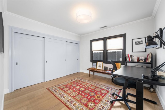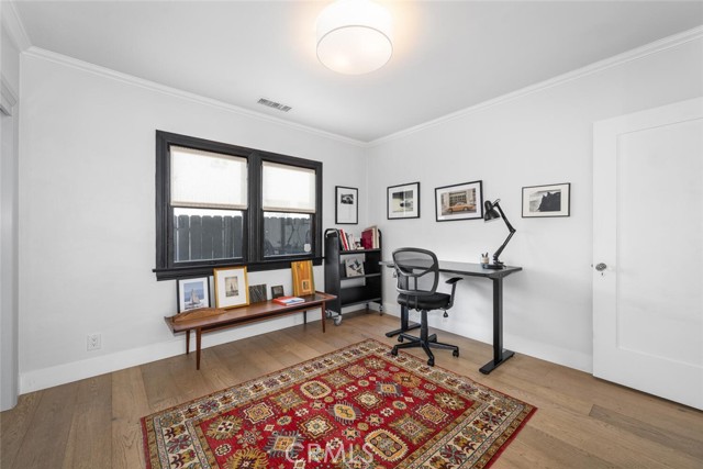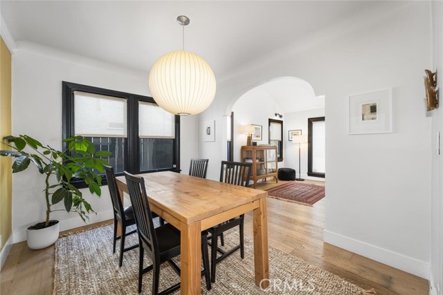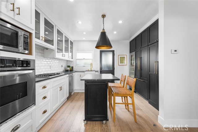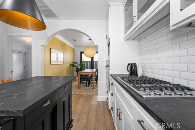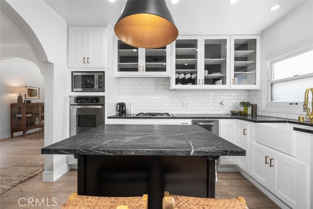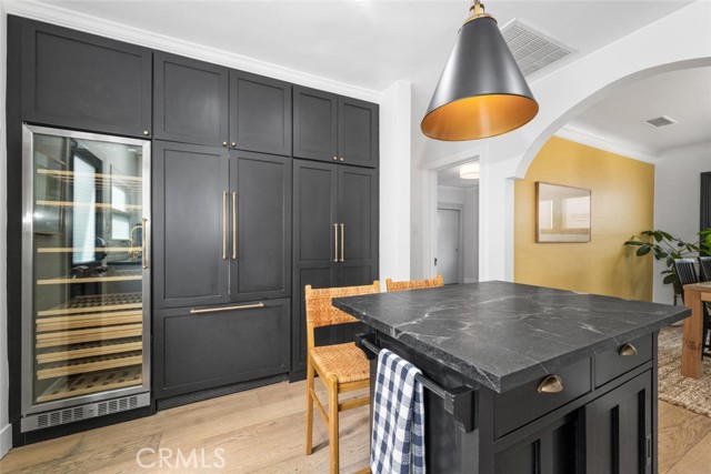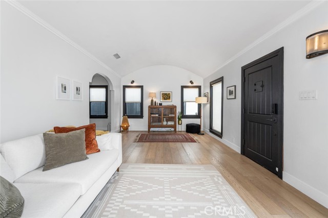 Experience timeless Spanish Colonial charm at 245 Covina Ave in Long Beach, where architectural character meets modern comfort. This beautifully restored Belmont Shore home invites you to relax under the shade of the olive tree in the private, landscaped front patio—an extension of your living space with multiple seating areas perfect for morning coffee or evening gatherings. Inside, white oak wide-plank flooring, barrel ceilings, and abundant natural light create a warm, elevated ambiance. Arched entryways lead to a formal dining room and a chef’s kitchen featuring Shaker cabinetry, soapstone counters, a matching island, Fisher & Paykel paneled refrigerator, Jenn-Air cooktop, tall wine fridge, farm sink with brass Waterstone faucet, and full pantry. Both bedrooms offer generous closets with built-ins, and the beautifully appointed bath showcases quartz and Spanish tile accents. Additional highlights include a finished garage/office with A/C, extra parking, tankless water heater, central HVAC, updated plumbing and electrical, and custom blinds throughout. Located just moments from 2nd Street, Marine Stadium, the beach, and Naples Island, 245 Covina Ave captures the essence of coastal living in the heart of Belmont Shore.