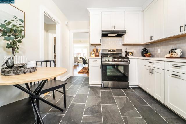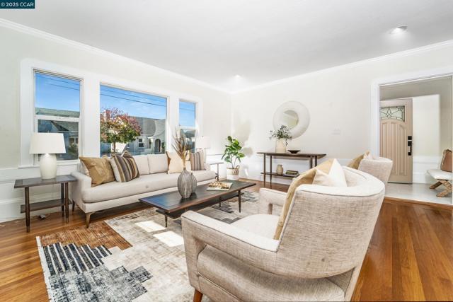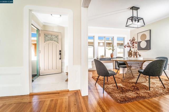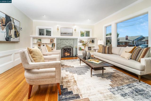 Just in time for the holidays, discover this timeless Craftsman at 556 41st Street, a perfect blend of classic character with modern style. Sunlight pours through the large picture window of the formal living room, highlighting refinished hardwood floors, built ins and a beautiful fireplace ideal for cozy gatherings. Recessed lighting and wall sconces create warm ambiance for any mood. The formal dining room flows from the living room for holiday dinners, brunch with friends or quiet mornings with coffee. The updated kitchen has a pantry, barn doors, NEW appliances, a sitting nook and room for a rolling island, if you desire. The renovated bathroom features a glass enclosed spa style shower with built in seating, glass enclosure, & honeycomb tile. A true laundry room with a sink leads to a flexible bonus room that works as an office or third bedroom or both. Mature trees provide privacy in the backyard and the garage sits at the rear of the property with direct yard access - a great storage or flex space option. Close to schools, restaurants, shopping, BART, I580/80. Charming, inviting and full of light, this home is ready to welcome you for the season!