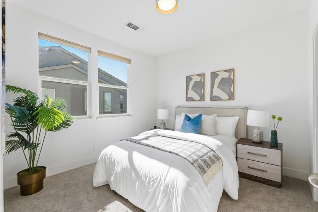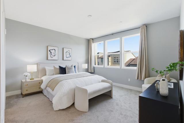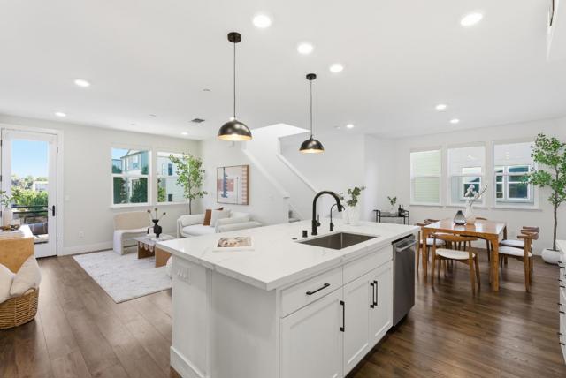 Discover this designer inspired corner townhouse with stunning mountain views. This home combines contemporary design, premium finishes, and unbeatable convenience, making it perfect for both homeowners and investors. The gourmet kitchen is a chefs dream, featuring quartz countertops, full-tile backsplash, Bertazzoni gas range, Fontie range hood, Bosch refrigerator and dishwasher, Kraus sink, smart touch faucet, and water purifier. One bedroom on the main living level ideal for guests or rental flexibility plus three additional bedrooms upstairs. Bedroom are outfitted with ceiling lights, while Nest thermostats provide separate climate control in each level. The primary suite includes a spa-inspired bathroom with a smart toilet for ultimate comfort. Additional highlights include a fully finished garage with painted walls, Tesla charger, water softener, and multiple storage racks. Residents enjoy a vibrant community with amenities such as a BBQ area, dog park, and kids playground. Step outside and stroll to Bills Café for brunch or catch Google, Meta, and Apple shuttle buses for work. Shop with ease at Costco, 99 Ranch, H Mart, and eat at countless restaurants all within minutes. With quick access to major freeways and top tech companies, this location simply cant be beat.