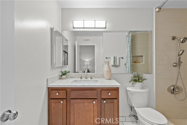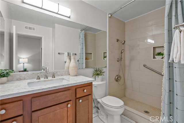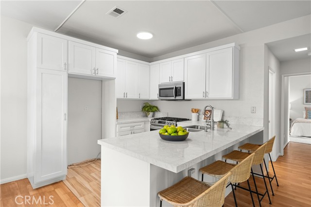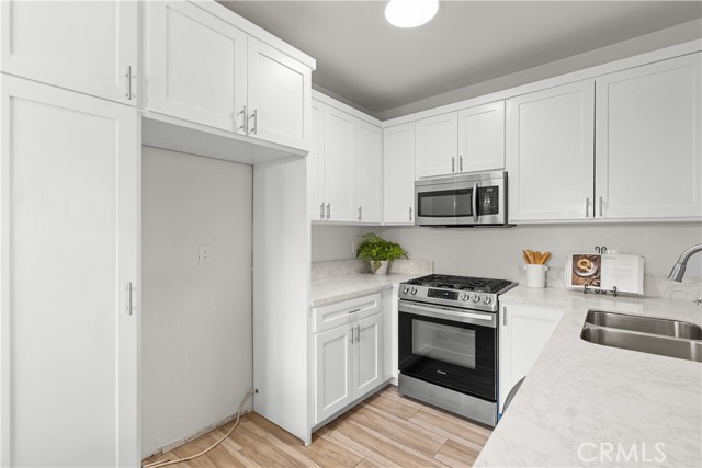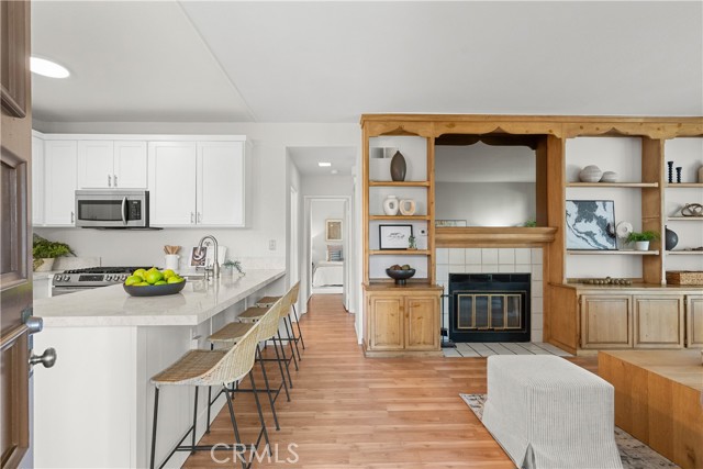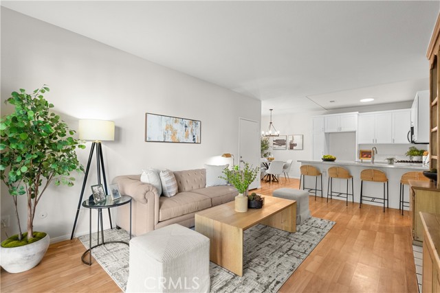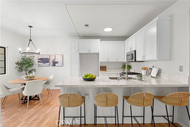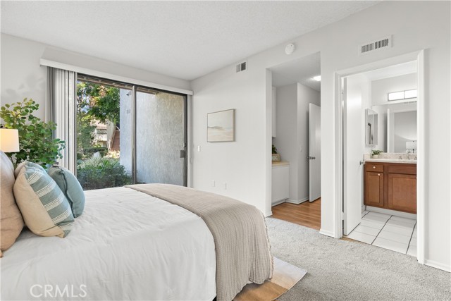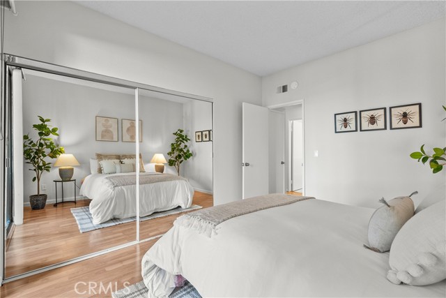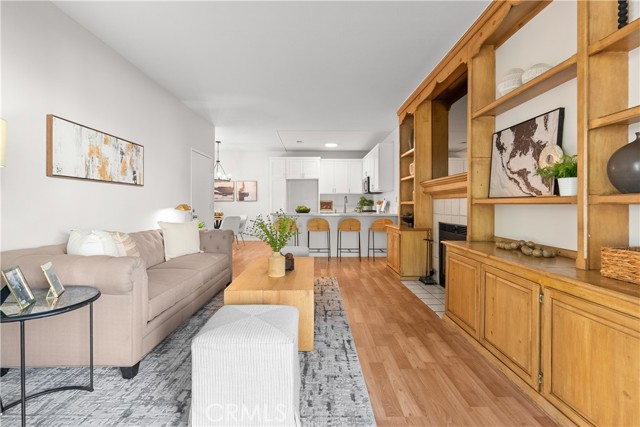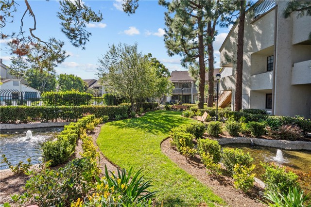 Welcome to the highly desirable and serene Lakeside community in Garden Grove! Enjoy peaceful living surrounded by lush landscaping, tranquil streams, and winding walkways in this beautifully maintained gated complex. This bright and spacious home showcases modern updates throughout. The kitchen features quartz countertops, a stylish backsplash, white shaker cabinets, and stainless-steel appliances. The living room’s custom built-in adds both function and charm, serving as the perfect focal point of the space. The primary bedroom offers a generous layout with a large walk-in closet and private ensuite bathroom. The second bedroom is also spacious. The hall bathroom includes a shower/tub combination. A full-size washer and dryer are neatly tucked into a dedicated laundry closet for added convenience. Step outside to enjoy multiple private patios, ideal for morning coffee or evening relaxation while taking in the calming views of streams and ponds throughout the community. Community amenities include a sparkling pool and spa. The HOA covers gated entry, grounds maintenance, and trash service. Two covered assigned parking spaces and an additional storage locker are included. Conveniently located near Costco, Home Depot, restaurants, and shopping, this Lakeside gem offers the perfect blend of comfort, convenience, and resort-style living.