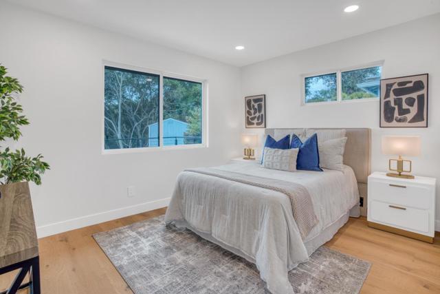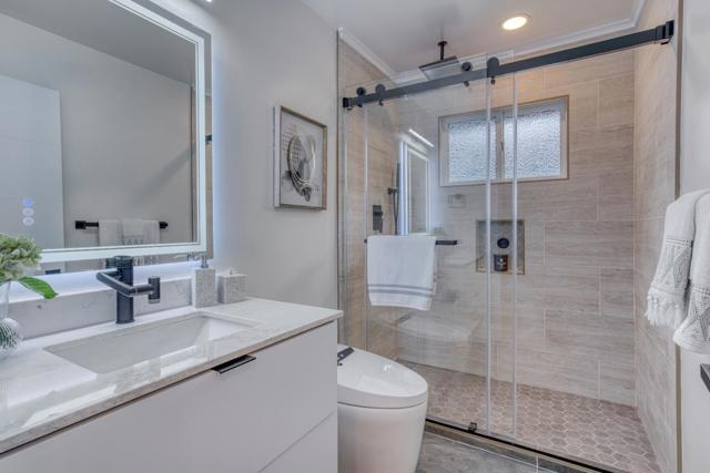 Newly remodeled in 2025, this beautifully upgraded 4-bedroom, 3-bathroom home combines modern luxury, smart living, and a flexible layout. Located within a top-rated school district, it offers the perfect blend of comfort and convenience. The main level features 2 bedrooms and 2 bathrooms, including a chefs kitchen with quartz countertops, a dramatic waterfall island, smart appliances, and elegant under-cabinet ambient lighting. Sun-drenched living areas are enhanced by motorized smart blinds and sleek, high-end finishes throughout. The lower level includes additional flexible living space with a custom water bar, a spacious family room, and a luxurious master suite--making it ideal for multi-generational living, guests, or a private retreat. Step outside to a rare, oversized deck, perfect for outdoor dining, BBQs, or simply enjoying the peaceful outdoor setting--an exceptional feature in this neighborhood. Smart, stylish, and move-in ready, this is a rare opportunity to own a fully upgraded home in one of the Peninsulas most sought-after locations.