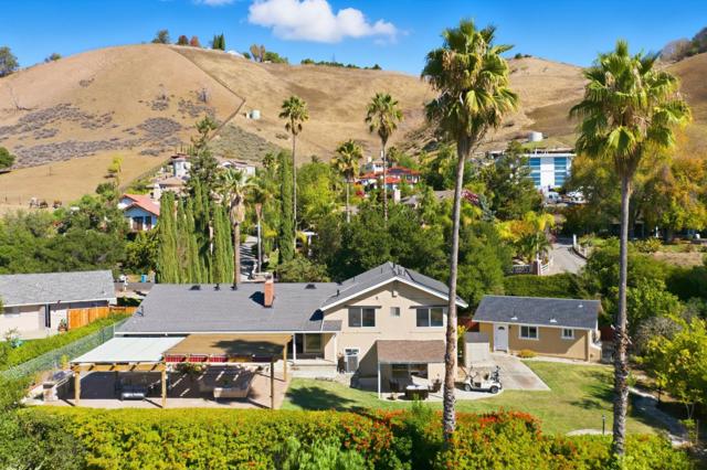 Nestled in the serene Alum Rock Foothills, this beautifully updated home blends timeless design with modern comfort. Set on a flat, expansive lot with breathtaking Silicon Valley views, it offers the perfect balance of privacy, space, and convenience just minutes from freeways, shopping, dining, and recreation. The main residence spans approx. 2,798 sq. ft. with 4 bedrooms and 3.5 baths. Spacious, light-filled living areas include a large living room, separate family room with a cozy fireplace, brand-new flooring, and fresh paint throughout. A 527 sq. ft. ADU features a full kitchen, living room, bedroom, and bath ideal for extended family, in-laws, or an au pair. Outdoor living shines with a built-in BBQ, shaded pergola, and panoramic valley viewsperfect for entertaining. The drought-tolerant landscaping and a driveway for up to seven cars add curb appeal and functionality. Additional highlights include paid-off solar panels, a new water pump, and an attached two-car garage. With two parcels totaling 14,868 sq. ft., the flat lot offers excellent potential for expansion. Located near the San Jose Country Club, SJC Airport, Alum Rock Park, and scenic trails, this home defines California comfort and convenience.