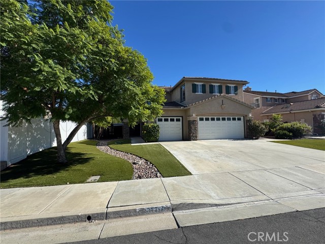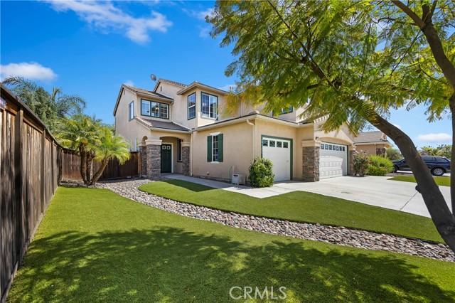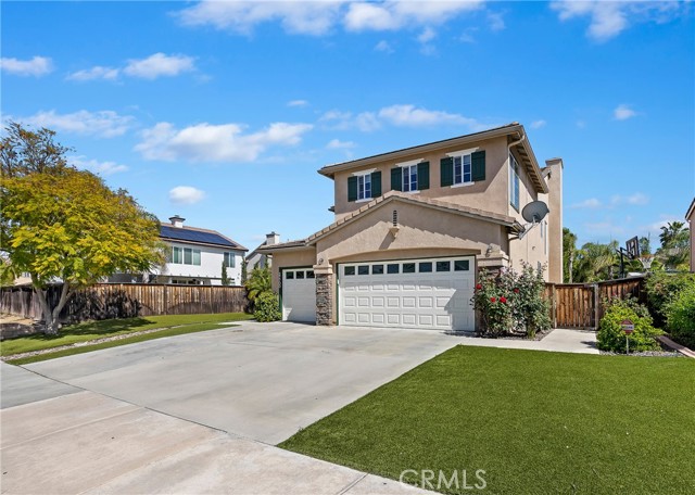 FOR LEASE – Spacious Pool (above ground) & Spa Home on a Large Lot! Solar power system is $120 which makes gross rent $3,820. A 2,999 sq. ft. home featuring 5 bedrooms, 3 bathrooms, a large bonus room, office, and 3-car garage. Freshly painted interior with new carpet and luxury vinyl plank flooring throughout. Enjoy great curb appeal with artificial turf and decorative rock landscaping. Inside, the home offers a spacious living room and separate dining area filled with natural light. The family room features a cozy fireplace and a built-in media cabinet. The kitchen includes a Corian island with bar seating, Corian countertops, and stainless steel appliances. A main floor bedroom and full bath are ideal for guests or in-laws. Upstairs, you’ll find the remaining bedrooms plus a large bonus room. The upstairs office includes a built-in desk and work area. The primary suite offers a spacious retreat with dual vanities, upgraded fixtures, and a walk-in closet with custom built-ins. A downstairs laundry room provides extra convenience. Step outside to an entertainer’s dream backyard featuring a newer above-ground pool, a 12' x 24' Trex deck with built-in seating, a separate above ground jetted spa, and a covered Alumawood patio with market lights for evening ambiance. Large side yards provide additional storage and space. Located in a desirable community close to schools, parks, shops, and restaurants. Refrigerator, washer, and dryer included. Rent includes weekly pool maintenance and landscape maintenance. GROSS RENT = $3,820