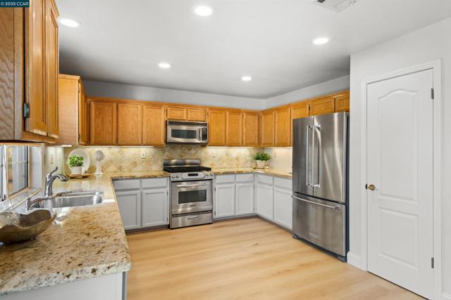 Welcome home to this bright and beautifully Westaire residence, perfectly situated on a quiet court in one of Martinez’s most desirable neighborhoods. Enjoy a light-filled open floor plan with vaulted ceilings and a gracious formal living area. The kitchen and family room flow together seamlessly, creating the ideal space for entertaining. The kitchen features granite counters, travertine backsplash, stainless steel appliances, gas cooktop, and a generous pantry, along with French doors leading to the private backyard. Upstairs, the spacious primary suite offers vaulted ceilings, a soaking tub, separate shower, and walk-in closet. Two additional bedrooms share a Jack-and-Jill bath, plus a built-in desk nook perfect for work or study. Additional highlights include new air conditioning (May 2025), inside laundry, and a beautifully landscaped yard. The Westaire community offers a pool, spa, tennis/pickleball and basketball courts, and an exercise trail. Conveniently located near parks, shopping, downtown Martinez, and easy freeway access to Highways 4 and 680.