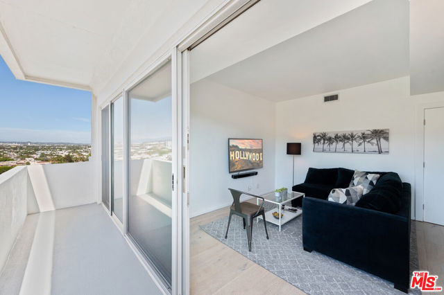 Jetliner views of Downtown and Hollywood Hills from this stunning corner unit in full-service building. Amazing newly renovated one bedroom with large den, en suite with steam shower, powder room. Fully furnished with TV in office/den, white stone countertops, light hardwood and stone floors, Fleetwood doors, large open Chef's kitchen, washer/dryer, nest, google home, and more. Cable and internet included. Located in the uber-chic Plaza Towers / 838 North Doheny condominiums has completed a two-year, twelve-million-dollar renovation. The building includes 24-hour concierge, valet parking, a ground-level pool, a rooftop pool with spectacular 360 city views, fire-pits, sundecks, gym, advanced building systems & security technology. Smoking not permitted in unit or building. All furnishings and accessories in photos included. Select pieces recently updated for a fresh, modern look. Features new washer/dryer and glass balcony railings.