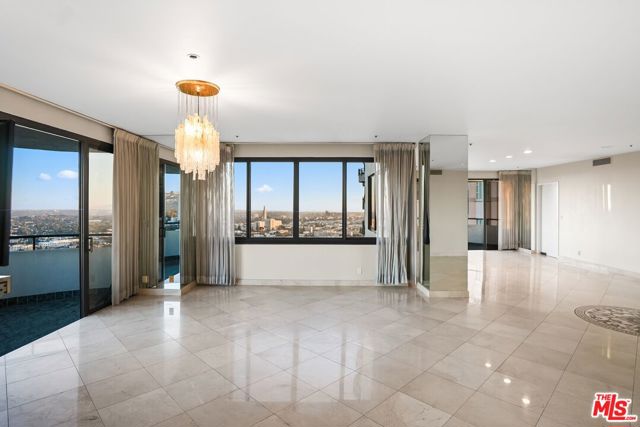 Step into a residence where every glance reveals a view worth remembering. An elegant entry leads to a spacious living and dining area with seamless flow to multiple terraces, ideal for relaxing or entertaining. From the soft glow of afternoon light to the sparkle of city lights at night, enjoy sweeping 180-degree views stretching from the Griffith Observatory to Century City and the Pacific Ocean. With three terraces, there's always a front-row seat to Los Angeles' beauty. The generous primary suite offers a private terrace, abundant closets, and a tranquil retreat. Elegant in scale yet ready for a new vision, this home is a blank canvas to create your own masterpiece. Located on the 18th floor, this prestigious full-service building offers refined amenities including a pool, fitness center, social room, valet service, and 24-hour doorman delivering a lifestyle defined by sophistication, comfort, and unforgettable views.