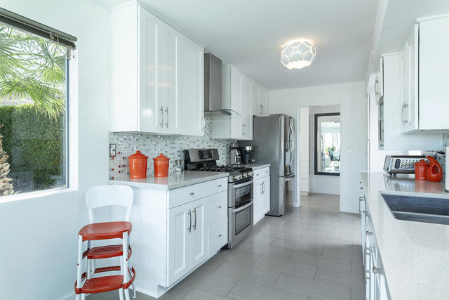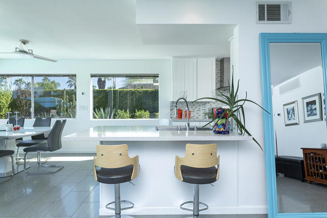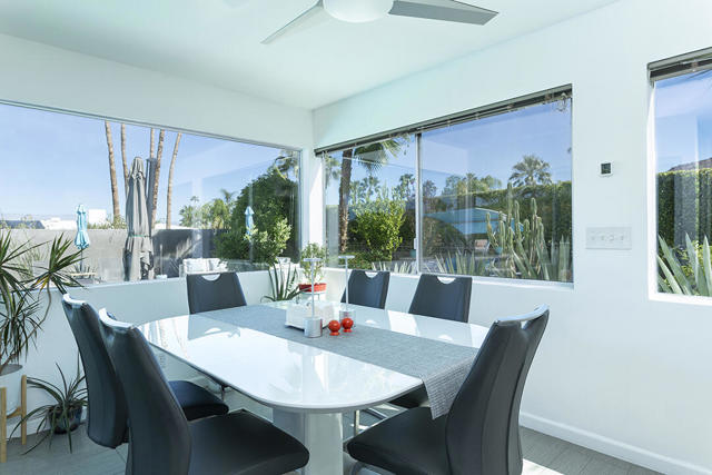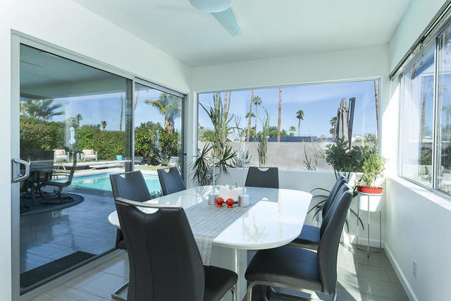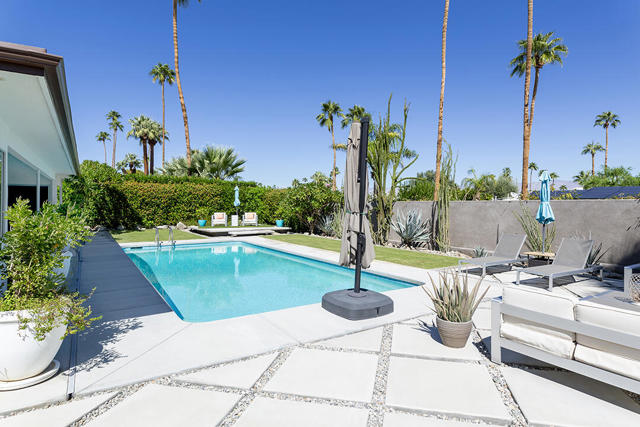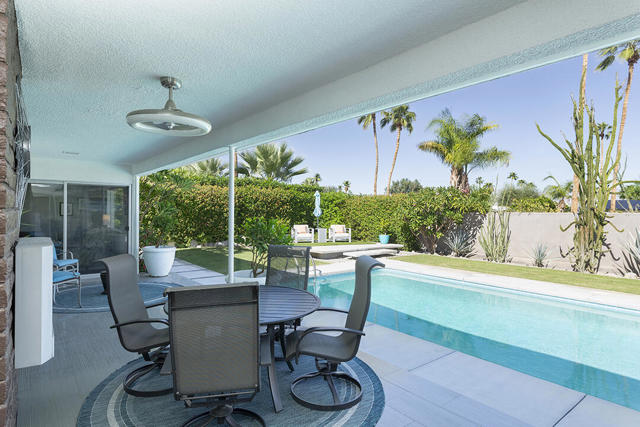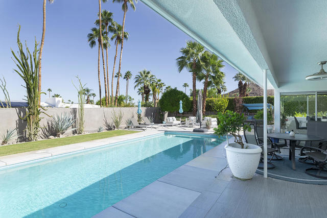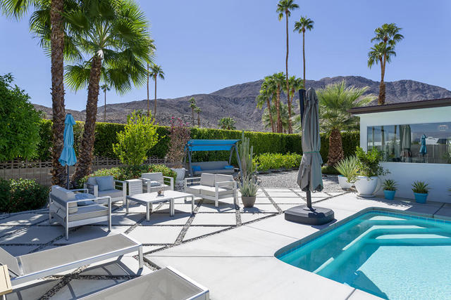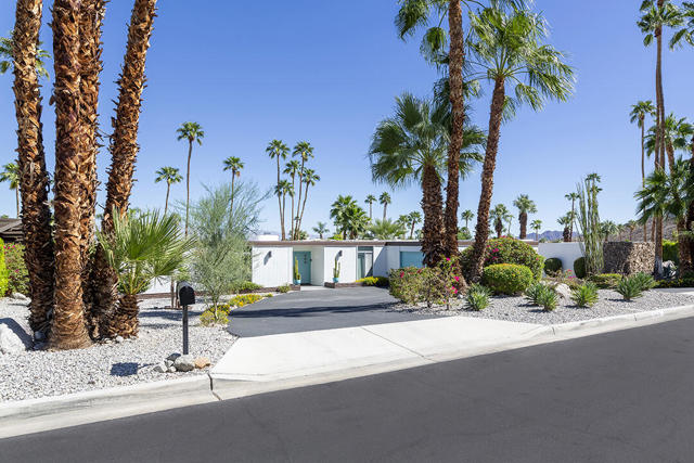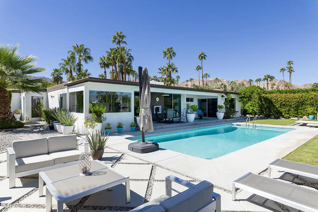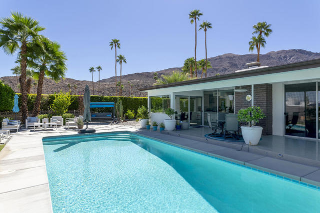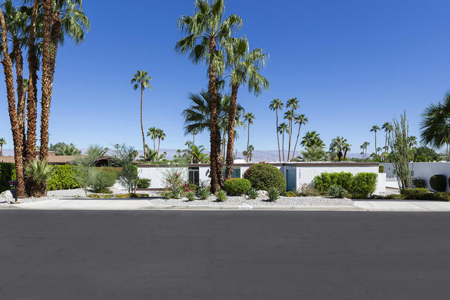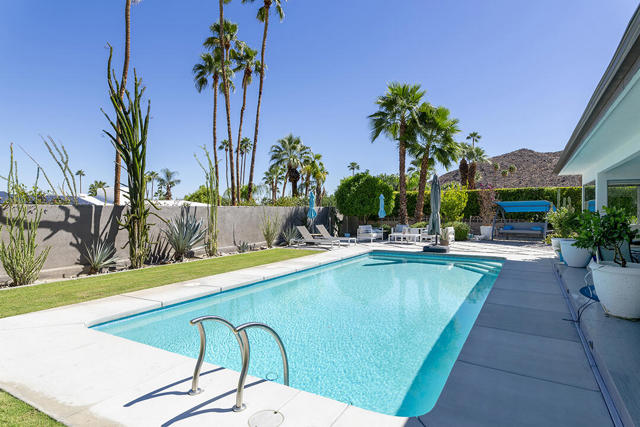 Panoramic mountain and valley views, exceptional privacy, and timeless mid-century style define this stunning Rancho Mirage home. Featuring 4 bedrooms and 3 bathrooms, this residence perfectly balances spacious indoor living with inviting outdoor areas ideal for relaxation and entertaining.Nestled high in Magnesia Falls Cove, the property sits above its neighboring homes, offering sweeping northern valley views. From its circular drive, you enter through a double-door entry to a bright and expansive living room centered around a gas fireplace framed by a wall of windows. Beyond is a covered outdoor patio and multiple seating areas surrounding the backyard pool, including a raised patio offering perfect mountain and sunset views.The inside dining area is surrounded by windows and provides similar views. It is located at the end of the home's updated galley-style kitchen with stainless steel appliances, abundant storage, and an eat-in breakfast bar open to the living room. From the living room, an original mid-century wood partition and matching pendant lamp mark the hallway leading to three of the bedrooms, including the primary suite.There are two guest bedrooms at the front of the home featuring generous closets and easy access to a shared, updated bath with direct backyard access. The primary bedroom suite includes two closets, an attached contemporary wardrobe, and an updated en-suite bath. Sliding doors provide access to the backyard's covered patio and pool. A guest suite is located on the opposite side of the home, featuring a front-facing picture window and a charming, updated bath.With a manicured yard, attached two-car garage, and carefully preserved architectural details, this home captures the very best of mid-century modern living in Rancho Mirage.