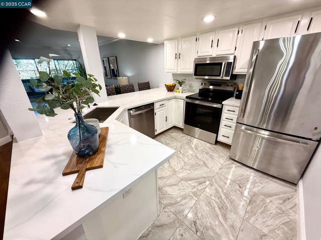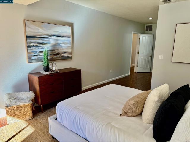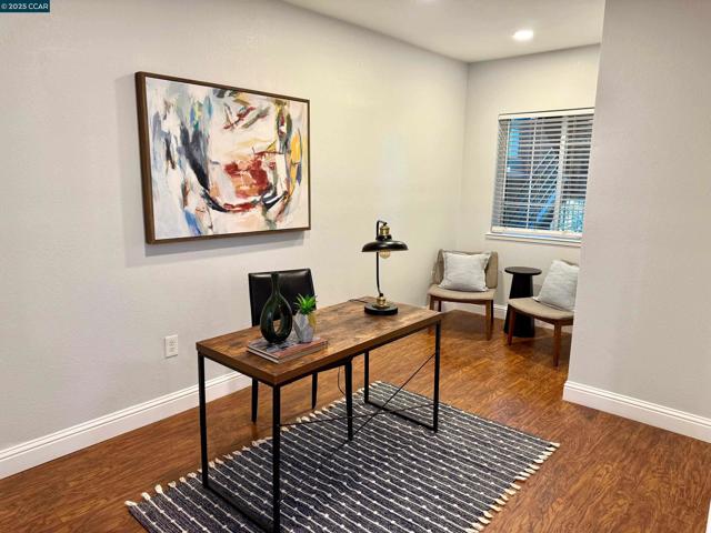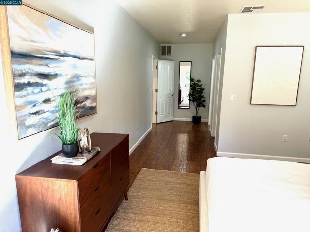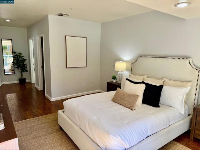 Gorgeous 3-bedroom 2 Bathroom Townhouse. Open concept floor plan, Engineered hardwood floors, Chunky crown molding, High ceilings. New Kitchen quartz counter Top, Stainless steel Sink, Range, Fridge, Dishwasher & Microwave, Laundry hookup in laundry closet. Quite location. Single story with no steps to entry! Private Gated parking Close to 680, 580, BART, Trails, Shopping, City Center entertainment, and minutes from San Ramon Valley Award-winning schools.