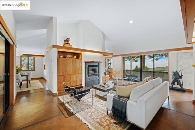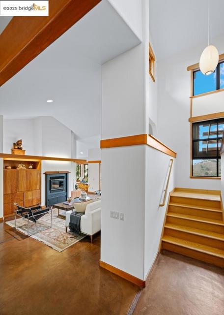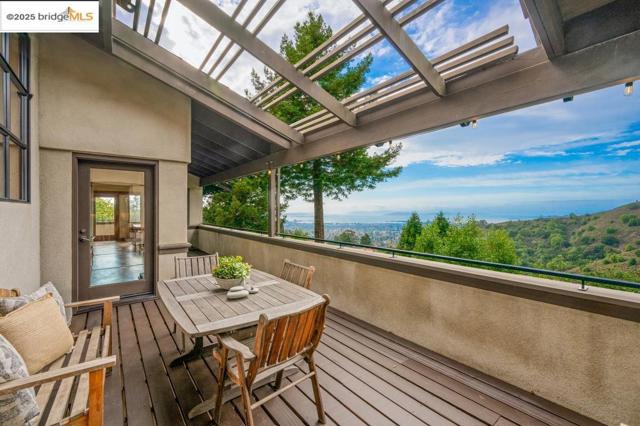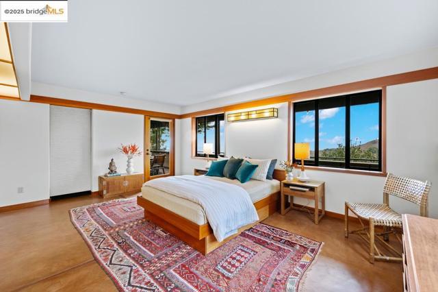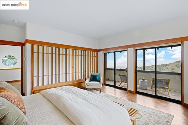 Set on a rare triple lot, together spanning just under an acre, at the end of a peaceful cul-de-sac, this expansive Japanese-influenced mid-century rebuild, offers privacy, volume & serene canyon & Bay views. Soaring double height ceilings & integral color concrete floors define a dramatic, serene, modern interior with seamless indoor-outdoor flow. Thoughtfully situated on the downslope with access directly into a 3-car garage, the 3 level design creates a strong connection to the landscape, with all levels being on grade. The main level features generous open living spaces, built-in cabinetry & a chef's kitchen. It has 3 beds and 2 ensuite baths on this level plus a powder room. Expansive decks extend the living area and capture green and Bay vistas. An elevator services all levels, including a 1 bd. in-law with separate access, ideal for guests, multi-generational living or a creative retreat. This distinctive property blends architectural sophistication & modern comfort in one of Berkeley's most private & sought after settings. Easy access to freeways and parks.