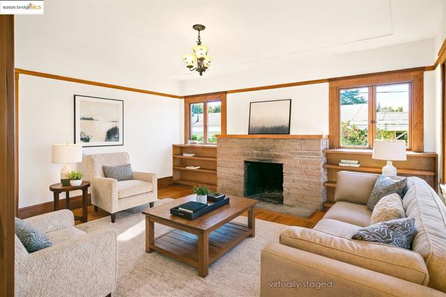This charming 3+ bedroom Craftsman bungalow on a sought-after street in Berkeley’s desirable Thousand Oaks neighborhood blends timeless character with thoughtful updates. A classic brick walkway leads to a welcoming front porch and formal entry. Inside, the spacious living room is bathed in natural light and features gleaming hardwood floors and a cozy wood-burning fireplace. The separate formal dining room retains its vintage charm with a stunning original built-in butler’s pantry. The updated kitchen offers modern cabinets, granite countertops, and stainless-steel appliances. The renovated bathroom features a large shower stall with dual shower heads, custom floor and wall tile work, and a stylish built-in vanity. Three generous bedrooms with dual-pane windows provide comfortable living space, while a large sunroom off the back bedrooms offer flexibility as a home office, playroom, or guest space. Step outside to a private backyard, a blank canvas ready for your personal vision. An oversized detached one-car garage completes the property. Just blocks from Solano Avenue’s vibrant dining and shopping scene with local favorites like Zachary’s, The Oaks Climbing Gym, Lavender Bakery, Taqueria Talavera and more. Bed count differs. Buyer to investigate. Buyer to verify use of space.