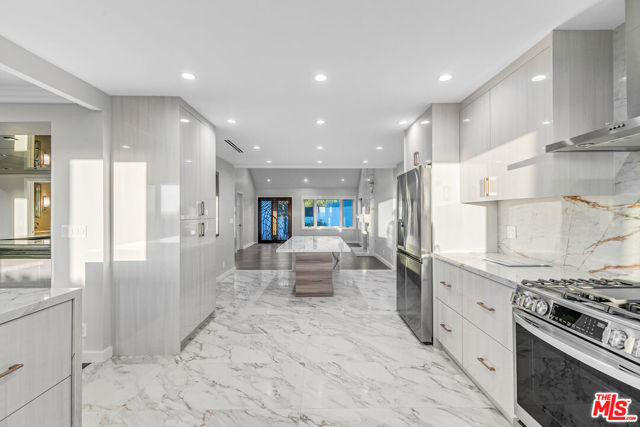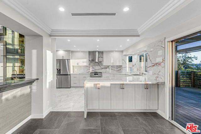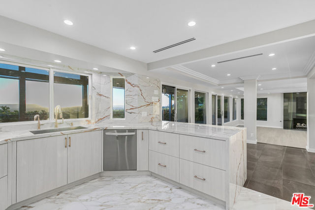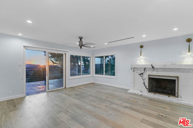 Oh, she's gotviews.The kind that stop conversation mid-sentence and make you forget your own name. Welcome to 1716 Via La Paz, where drama is the floor plan and subtlety was left at the gate. Literally there's a private gate. You'll feel important every time it opens. Walk in and it's instant showtime. The ceilings shoot up to the heavens, sunlight floods in like it's trying to get discovered, and marble practically everywhere you look. Not one, not two, but three fireplaces. Because why commit to one vibe when you can have "cozy," "sultry," and "main character meltdown" all in the same night? The kitchen is a moment. Bold, glossy, unapologetic. The kind of space where you'll host a dinner party just to say, "Oh this old marble slab? Imported." It spills into a living area that's pure glass and glow, with doors opening out to a deck that hovers above the city like your own personal red carpet. Upstairs, the primary suite gives leading-role energy. There's a soaking tub on a platform (because of course there is), a marble shower that deserves its own lighting cue, and yes, a fireplace for nights that call for less Netflix and more chilling. The other bedrooms hold their own, including a downstairs number with a custom Murphy bed that flips down faster than a well-timed death drop.And then we hit the bar. The mirrored wet bar. The sparkle, the shimmer, the Studio 54 of Burbank. This is where conversations get louder, secrets get funnier, and someone inevitably says, "We should do this every weekend." The sliding doors lead to a deck that practically hums with possibility. Sunset here doesn't just happen, it performs. And when you finally peel yourself away from your own fabulous fortress, you're minutes from Castaway Burbank for the city's best view that isn't yours, and DeBell Golf Course for when you want to wear a collared shirt and call it exercise. 1716 Via La Paz isn't here to fit in. She's the headliner. The statement piece. The afterparty and the encore all rolled into one hillside home.