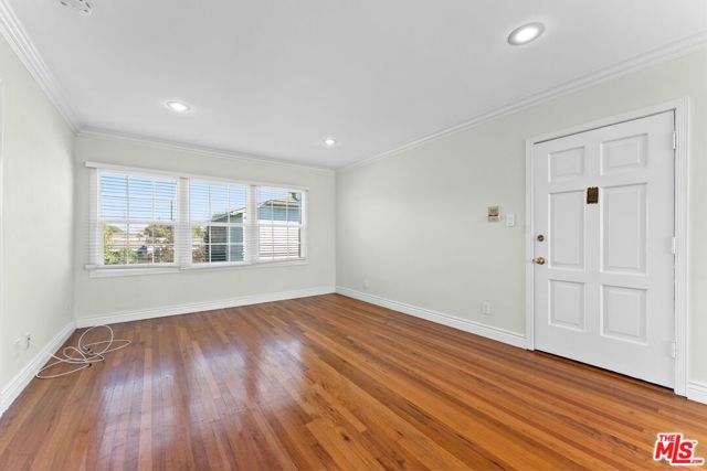 Beautifully Renovated Apartment in Faircrest HeightsNestled in the charming and highly desirable Faircrest Heights neighborhood, this beautifully renovated apartment is set within a classic Mid-Century Traditional building.Step inside to find a bright, open space adorned with hardwood and tile floors, elegant crown moldings, and high ceilings that create an immediate sense of volume and sophistication. Natural light floods every room, enhancing the calm, airy ambiance and evoking the serenity of a Zen retreat.The inviting living room features a cozy fireplace and opens to serene views that enhance the home's peaceful atmosphere. The primary suite offers a generous walk-in closet and a luxurious bathroom with a jacuzzi tub and separate showerperfect for unwinding at the end of the day.A custom kitchen serves as the heart of the home, thoughtfully designed with style and functionality in mind. It's fully equipped with a refrigerator, stove, dishwasher, and garbage disposal, making daily living both convenient and effortless. A separate dining area provides the perfect space for hosting or enjoying quiet meals.Additional features include double-pane windows for energy efficiency and sound insulation, ample closet space with three total closets, and a laundry room conveniently located in the garden area.Parking includes one enclosed garage space with storage, plus ample no-permit street parking.Located on a tranquil residential street, the home offers easy access to Century City, Beverly Hills, and Culver City, as well as quick connections via the Freeway and Expo Line to Downtown LA and Santa Monica. Just three blocks from La Cienega and Pico, residents can enjoy nearby restaurants, cafes, gyms, and shops. The community's lush grassy area provides a perfect outdoor retreat amid a quiet, romantic neighborhood setting. No pets allowed.